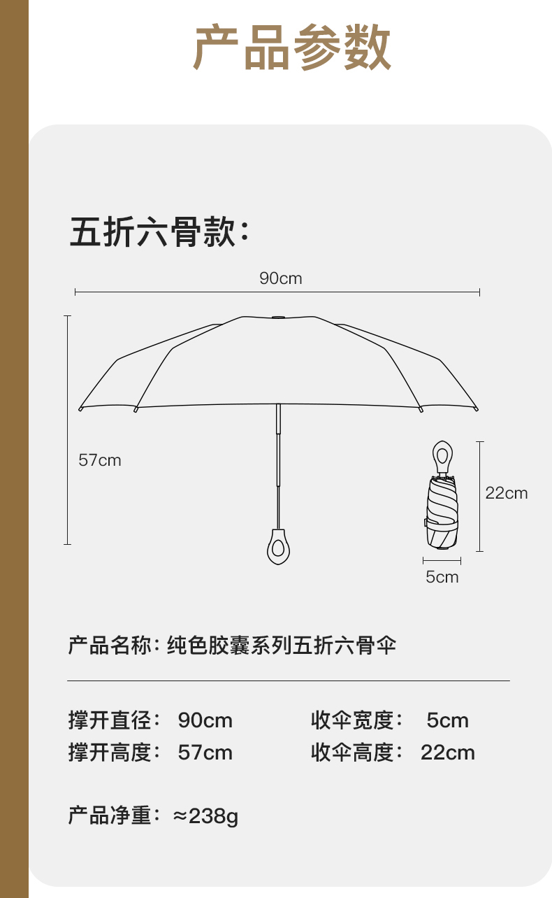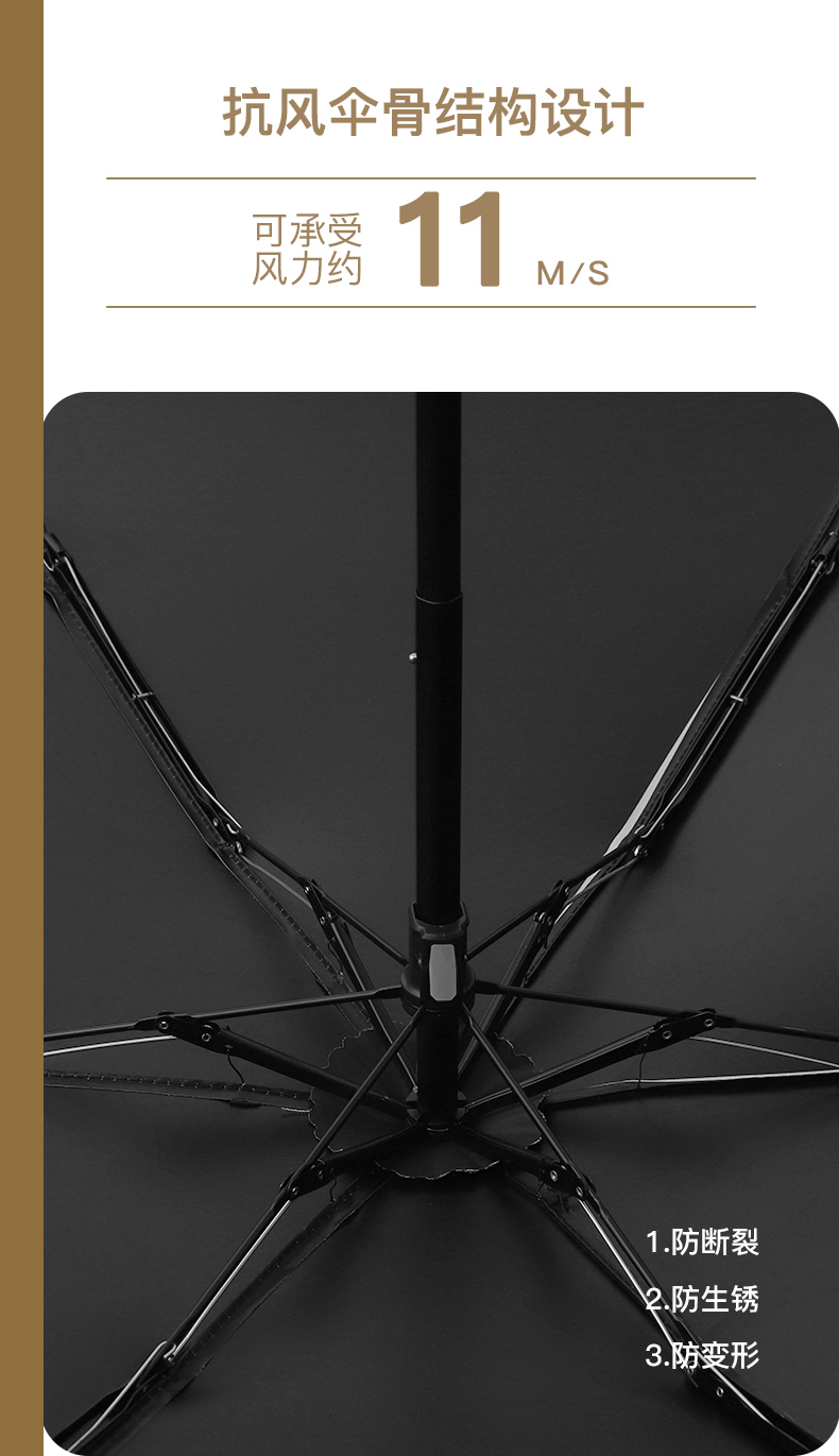 商务黑6骨胶囊伞指环手柄