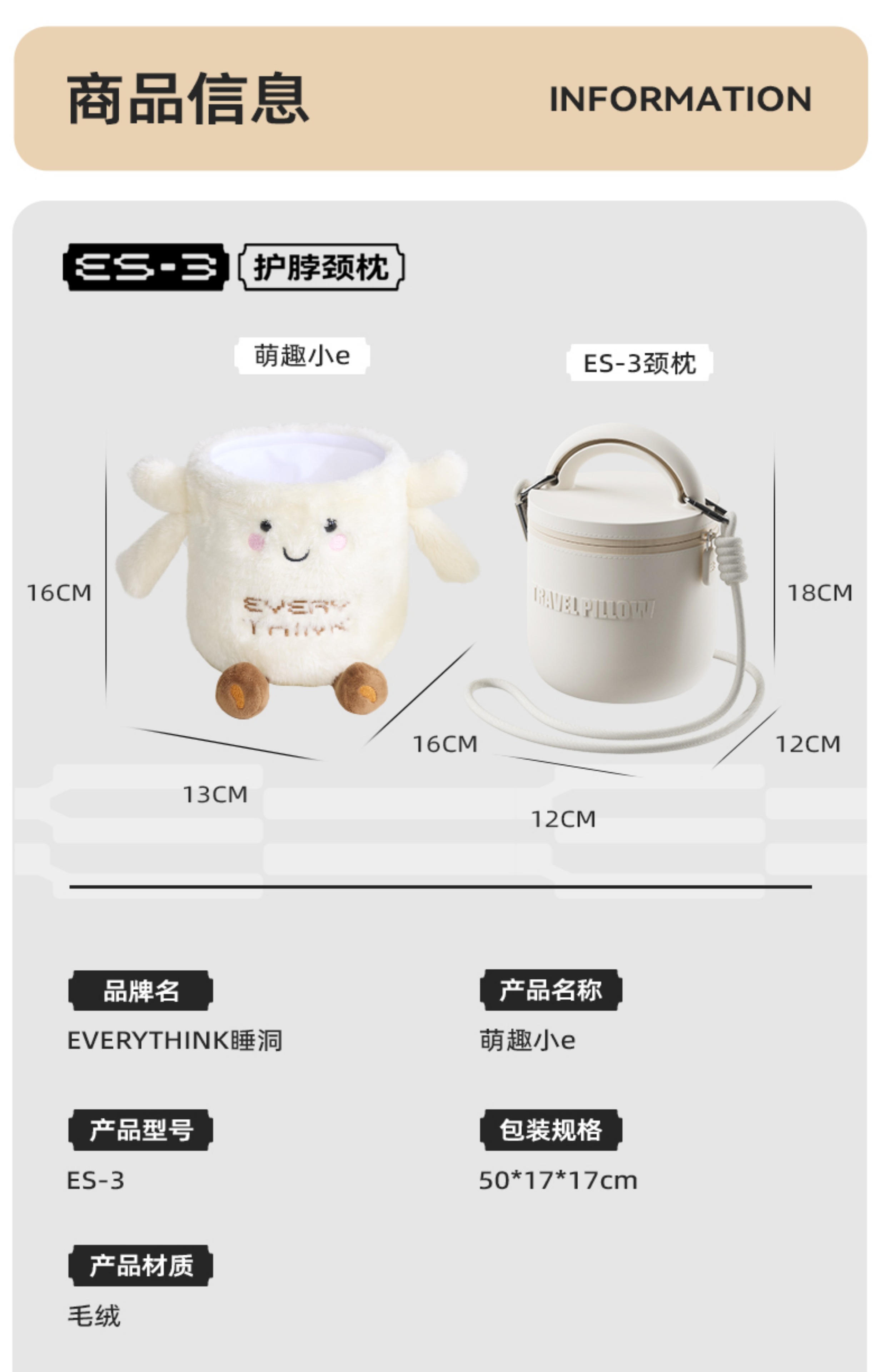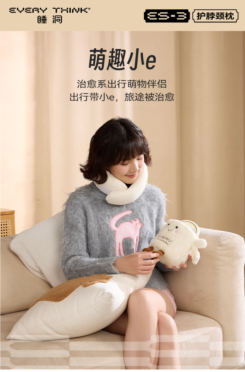 脑洞氛子(EVERYTHINK) 护脖颈枕 ES3 萌趣小e款 (颈枕+收纳包+玩偶套)*1套 象牙白(单位:组)