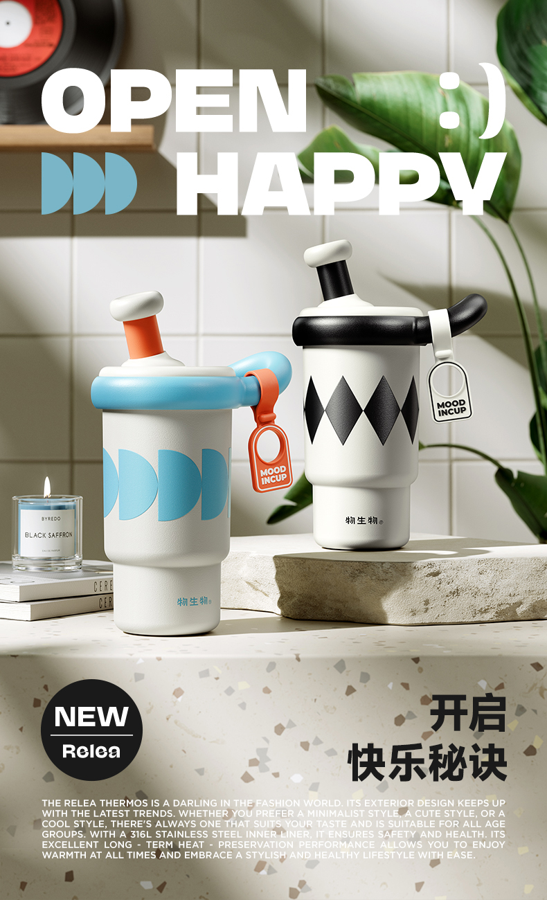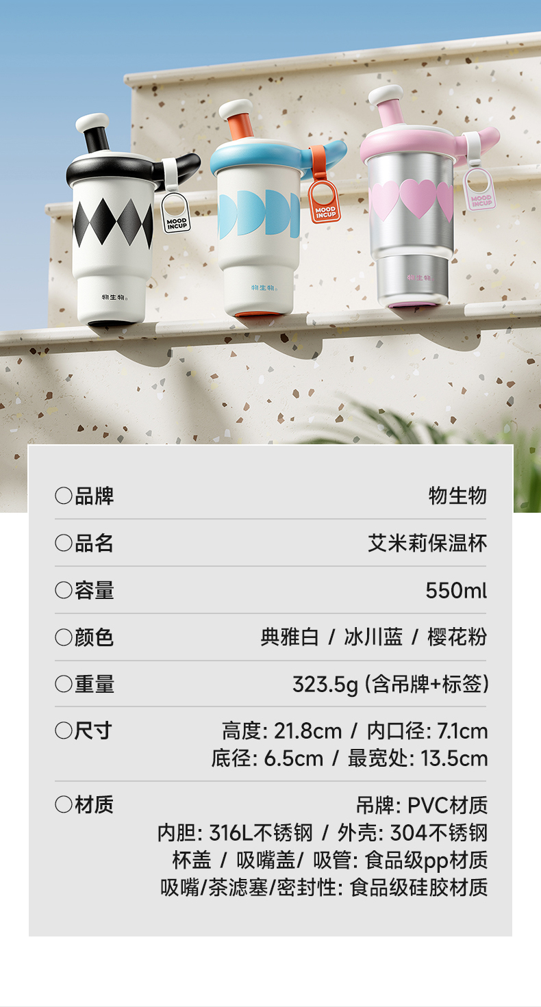 物生物(RELEA) 艾米莉保温杯 JV012521-0550-BS00 550ML 典雅白(单位:个)