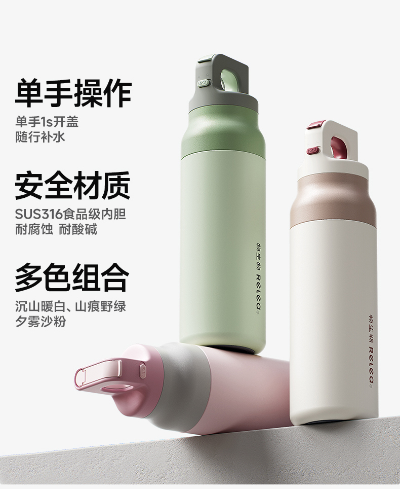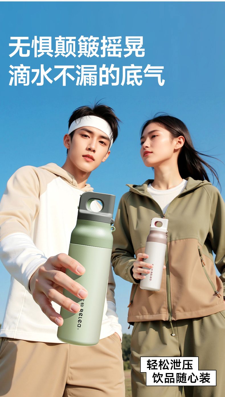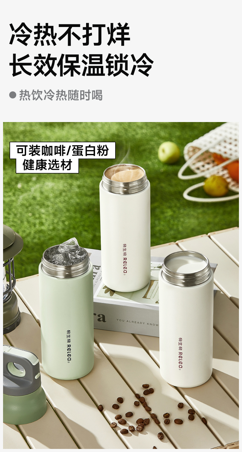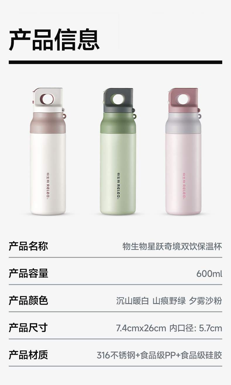 物生物(RELEA) 星跃奇境派双饮保温杯 JV012523-0600-VS00 600ML 山痕野绿(单位:个)