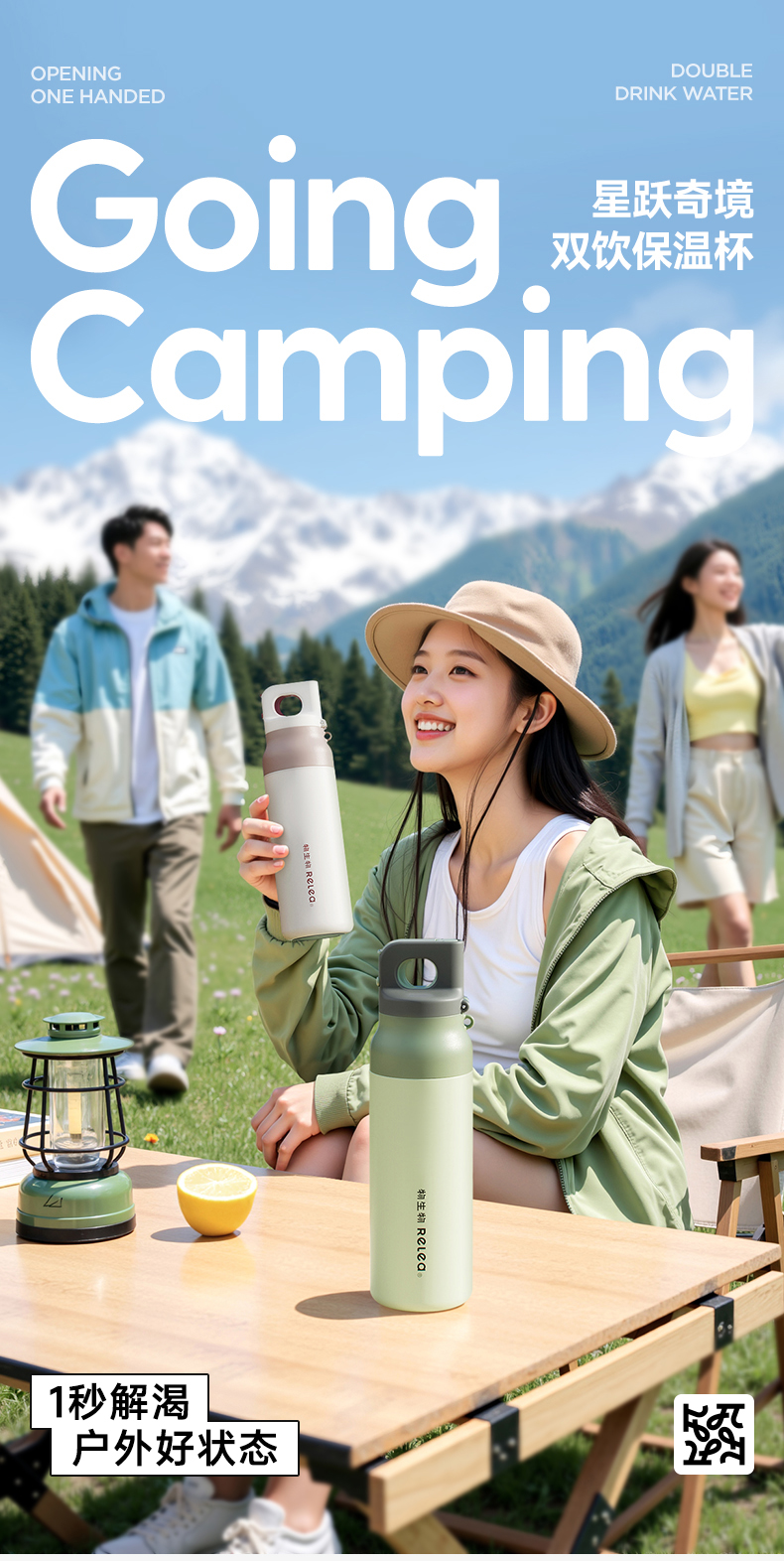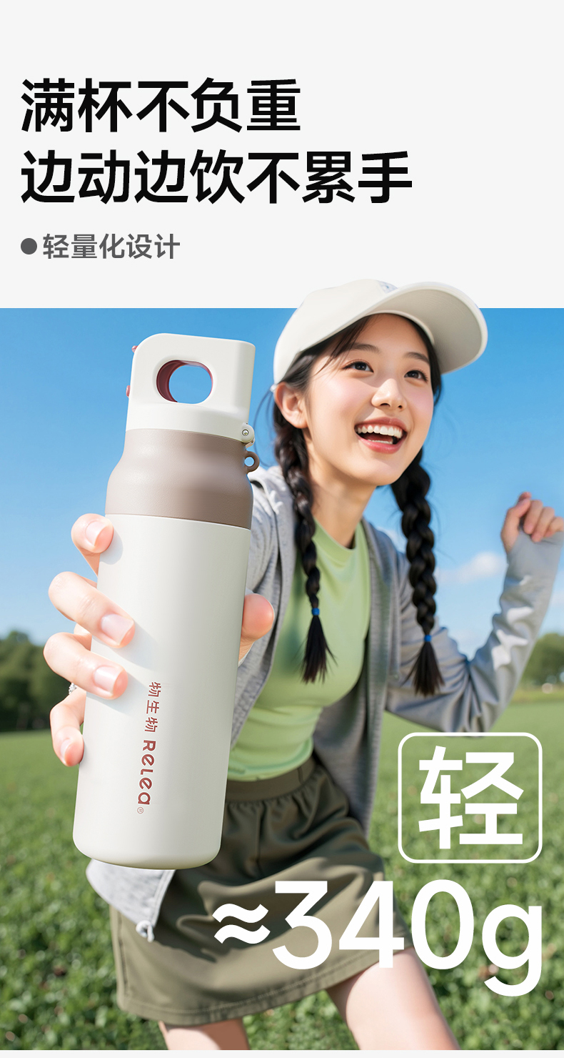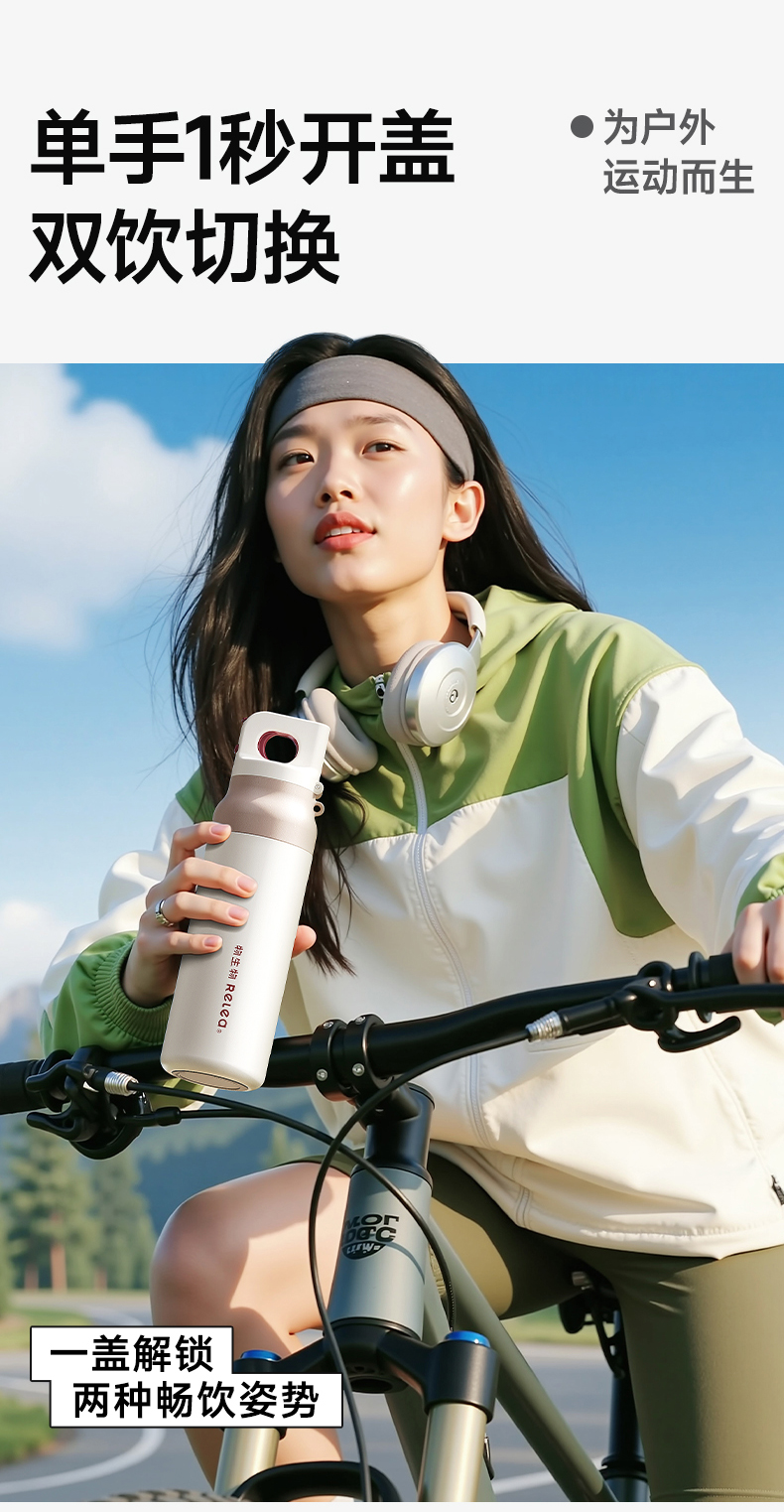 物生物(RELEA) 星跃奇境派双饮保温杯 JV012523-0600-VS00 600ML 山痕野绿(单位:个)