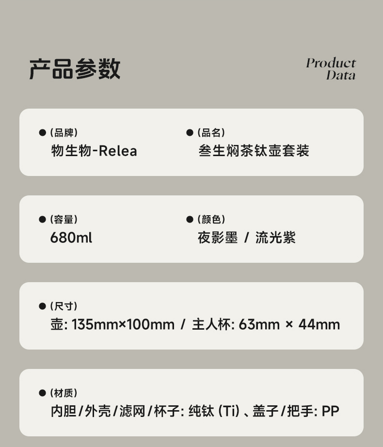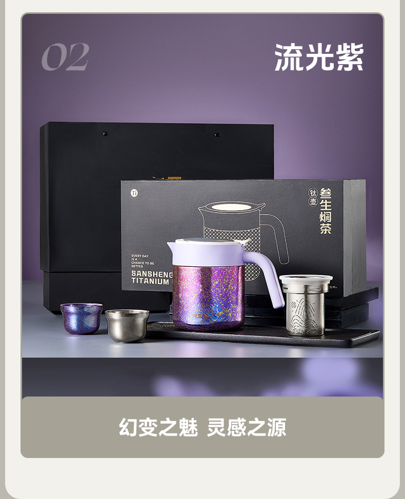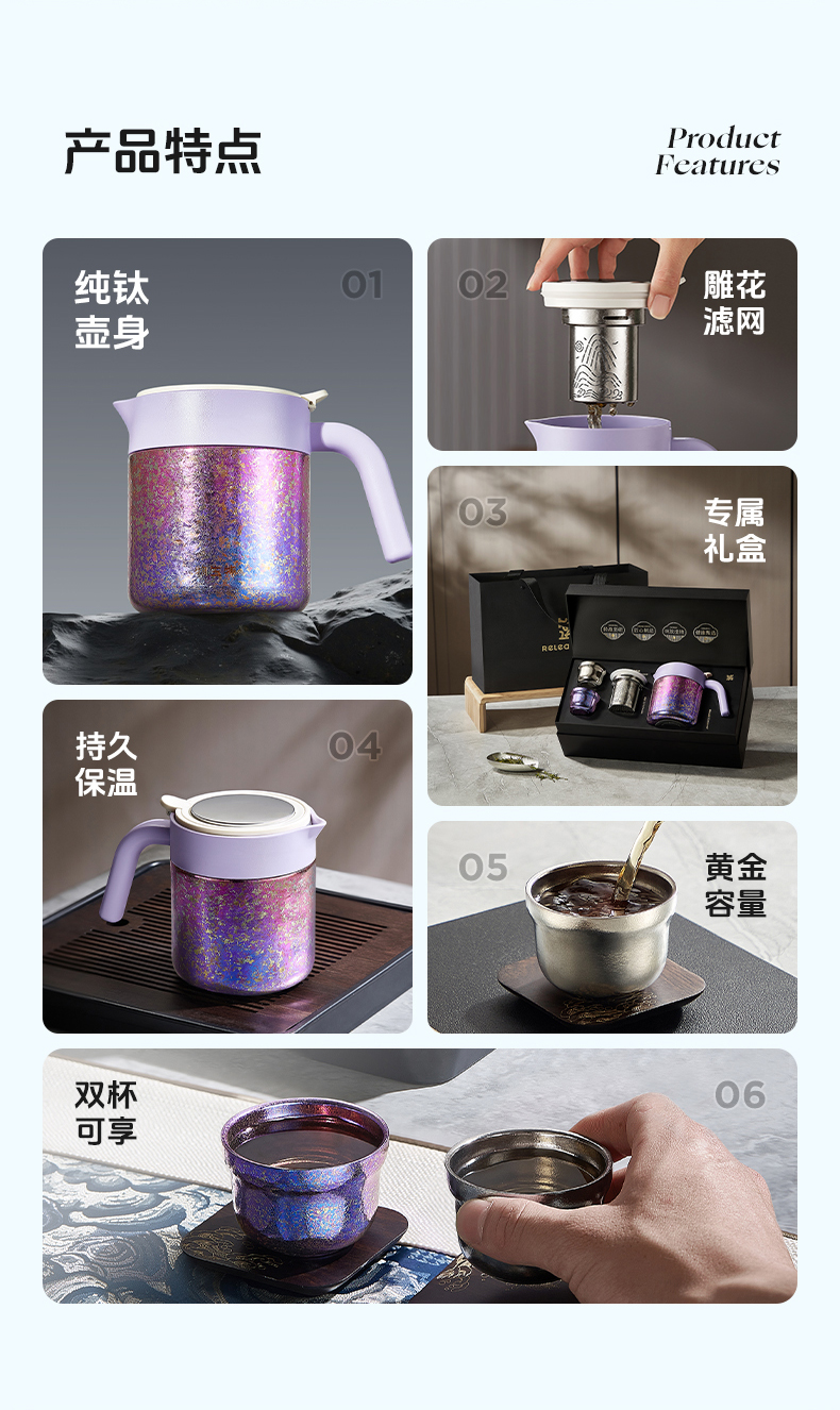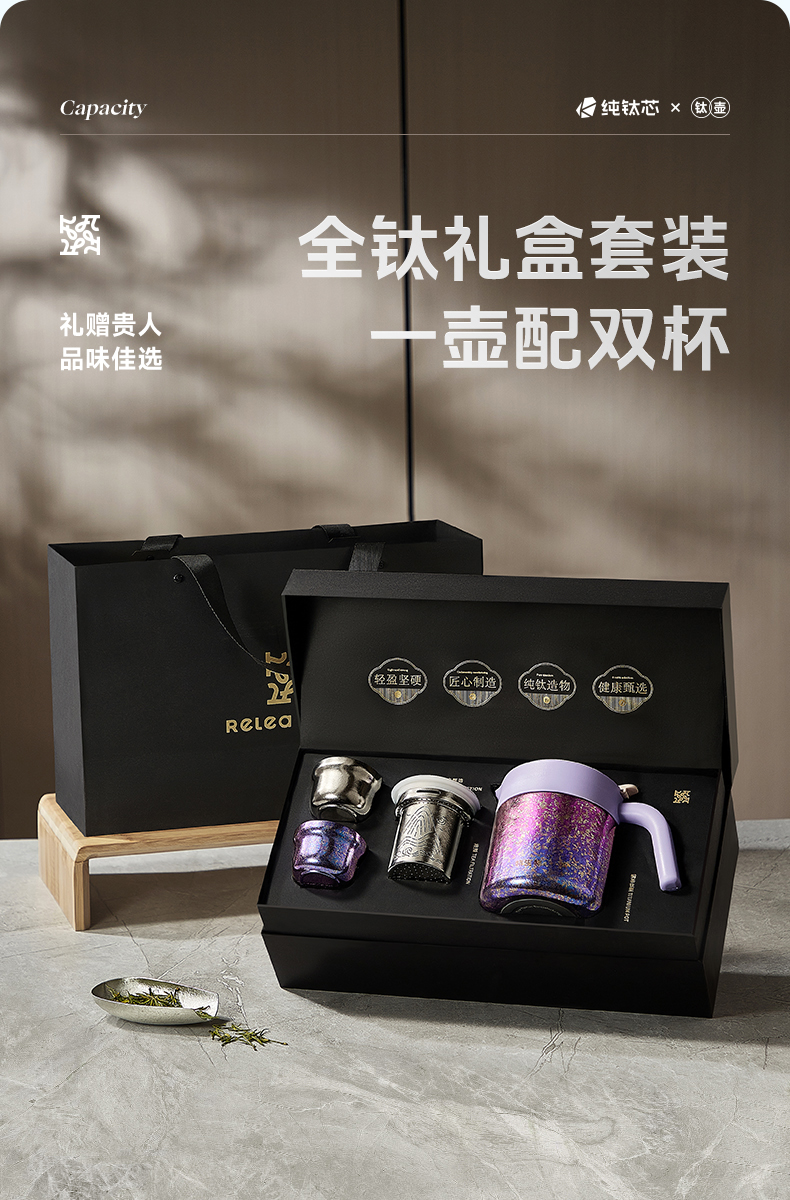 物生物(RELEA) 叁生焖茶钛壶套装 JV022501-0680-LS00 680ML 流光紫(单位:个)