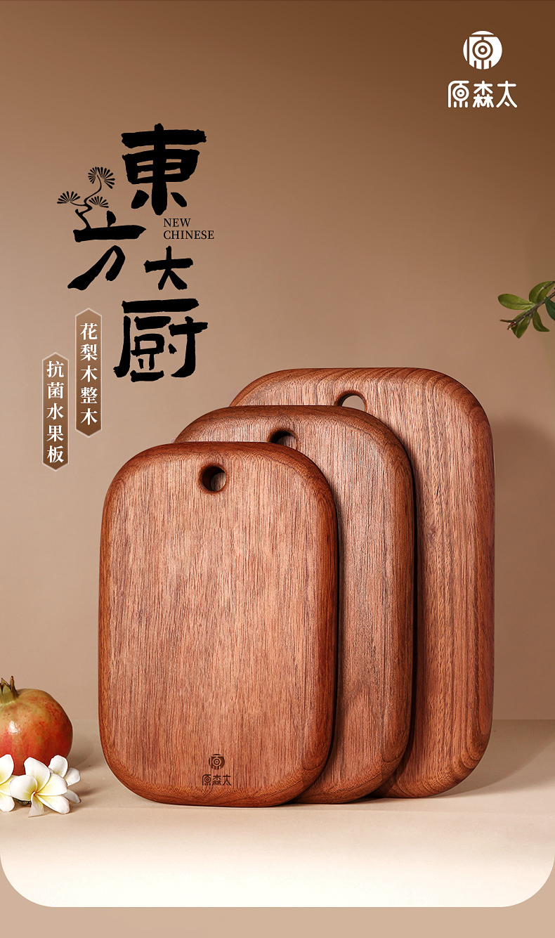 原森太 花梨木整木水果板 02.YSTCY0250 30x20x2cm【小号】+36x24x2.3cm【大号】 褐色(单位:组)