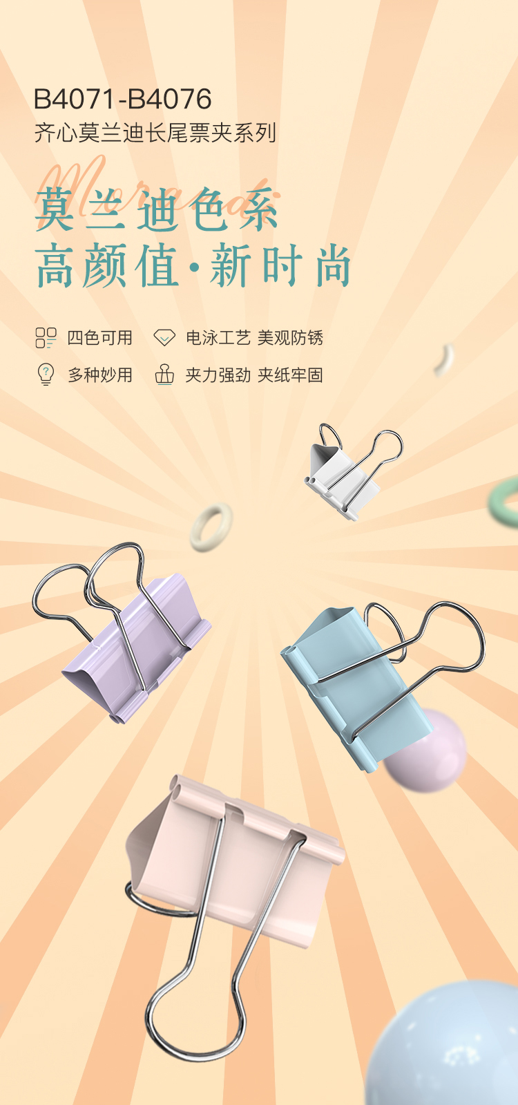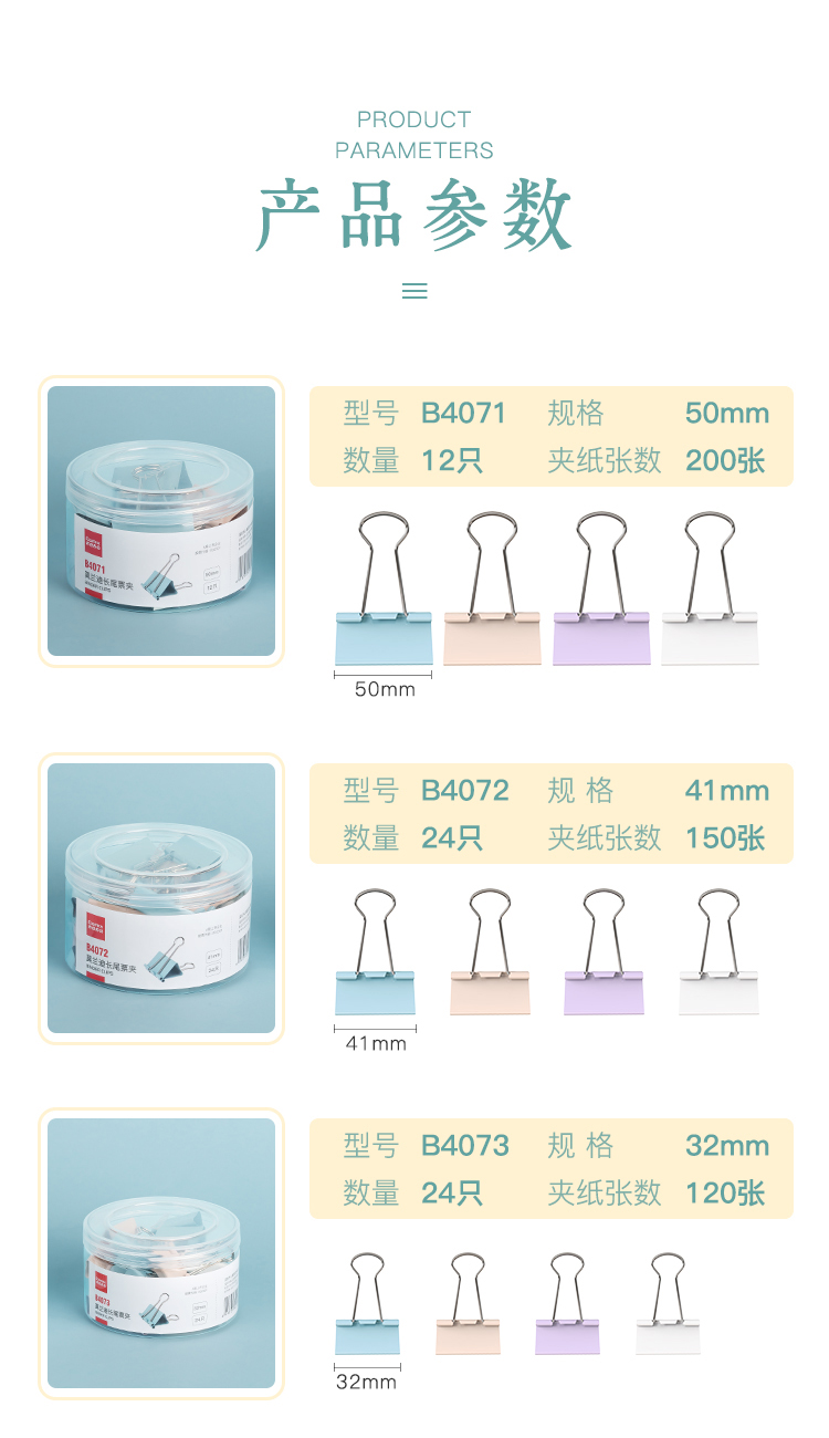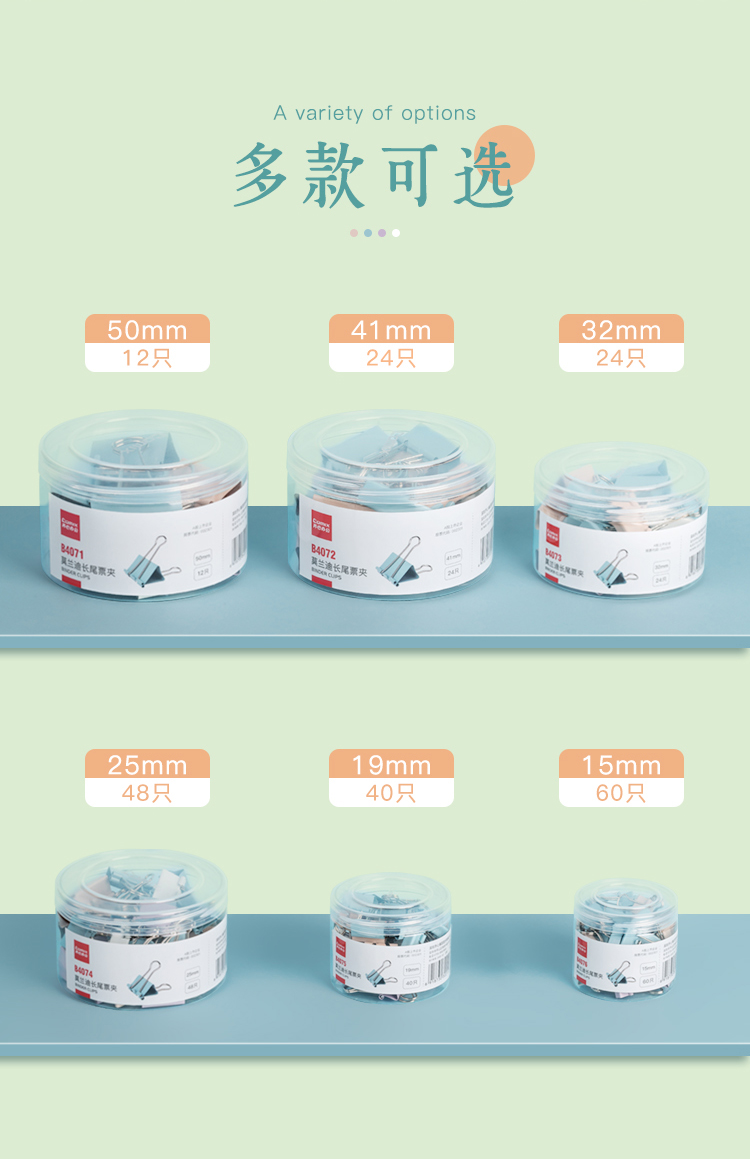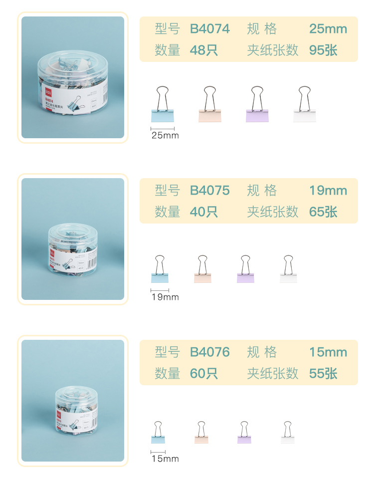 齐心(COMIX) 长尾票夹 B4073 24只 混色(单位:套)