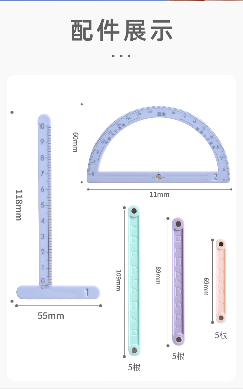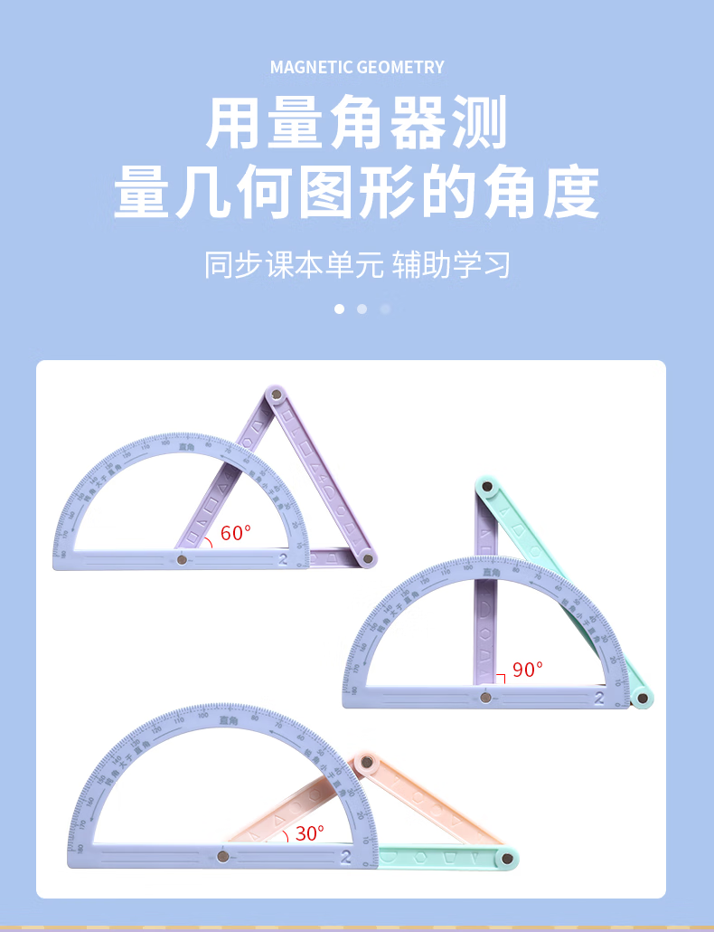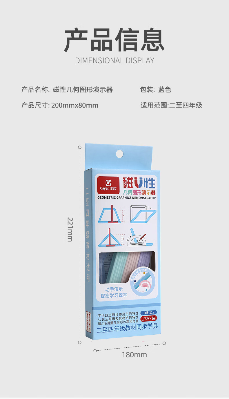 钧林 磁性多边形活动几何 小学生二至四年级 数学教具1套 50g 【含收纳盒】17件+量角器 蓝色(单位:套)