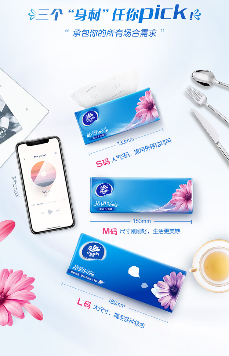 维达 超韧抽纸 6901236330173 3层120抽3包 蓝色(单位:提)