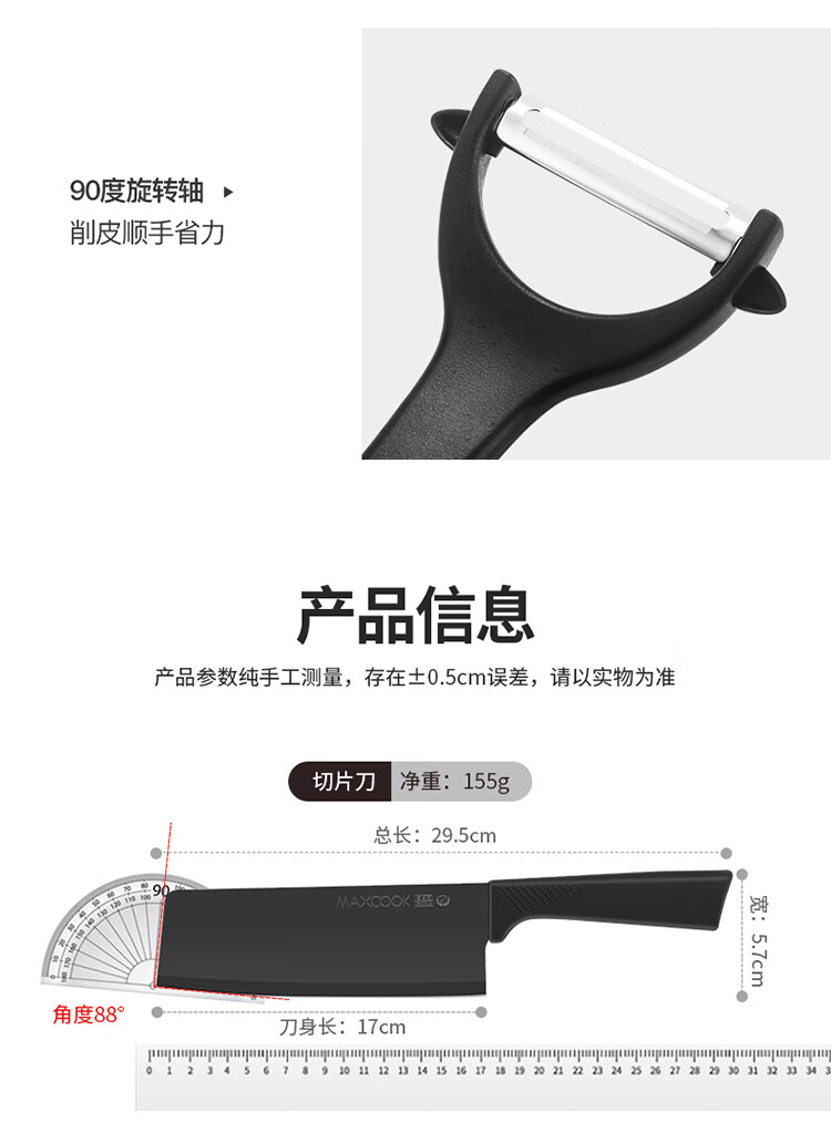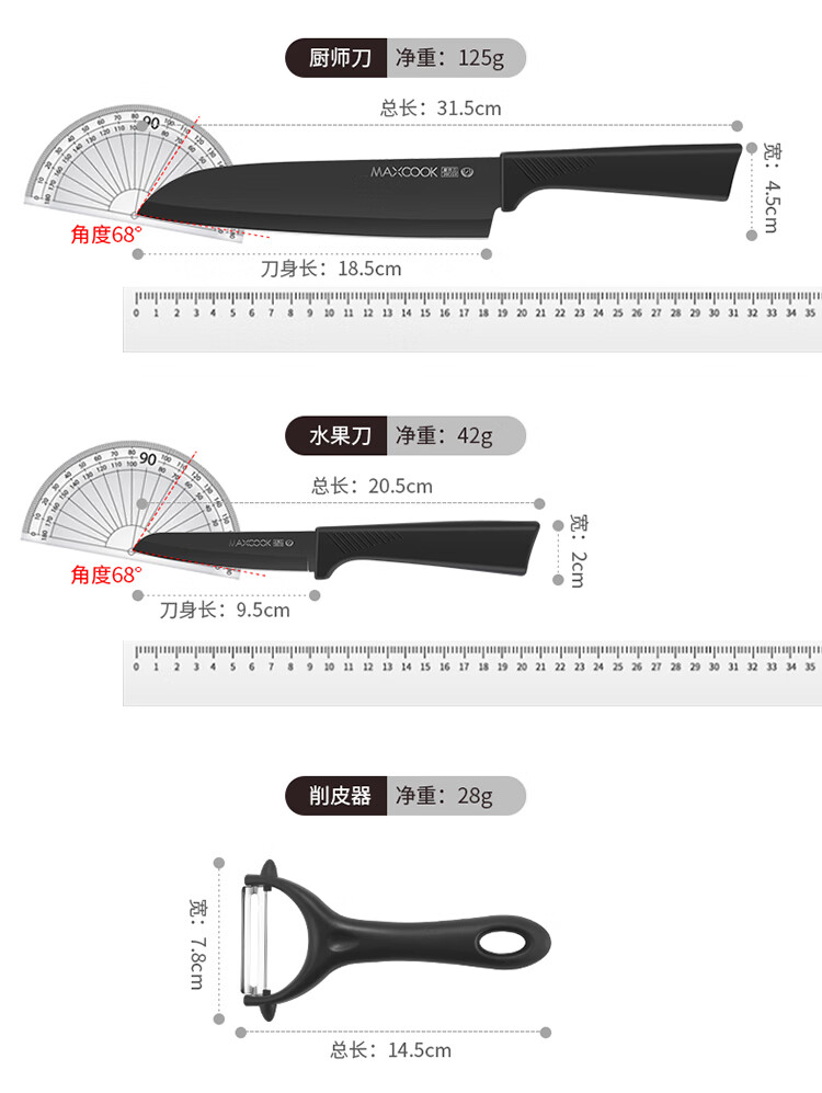 美厨(maxcook) MCD1108 3件套 不锈钢刀具套装 黑色(单位:套)
