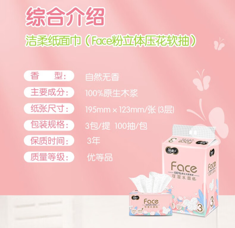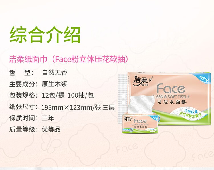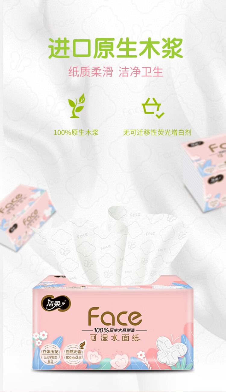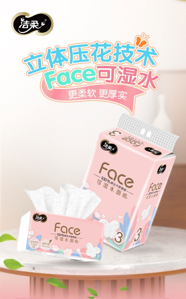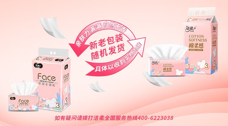 洁柔(C&S) 绵柔感抽纸 DR238-03R-1提 3层100抽3包 粉色(单位:提)