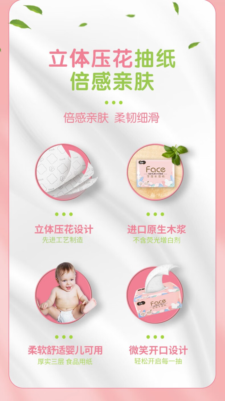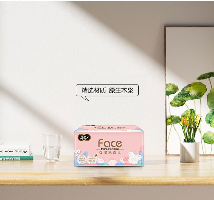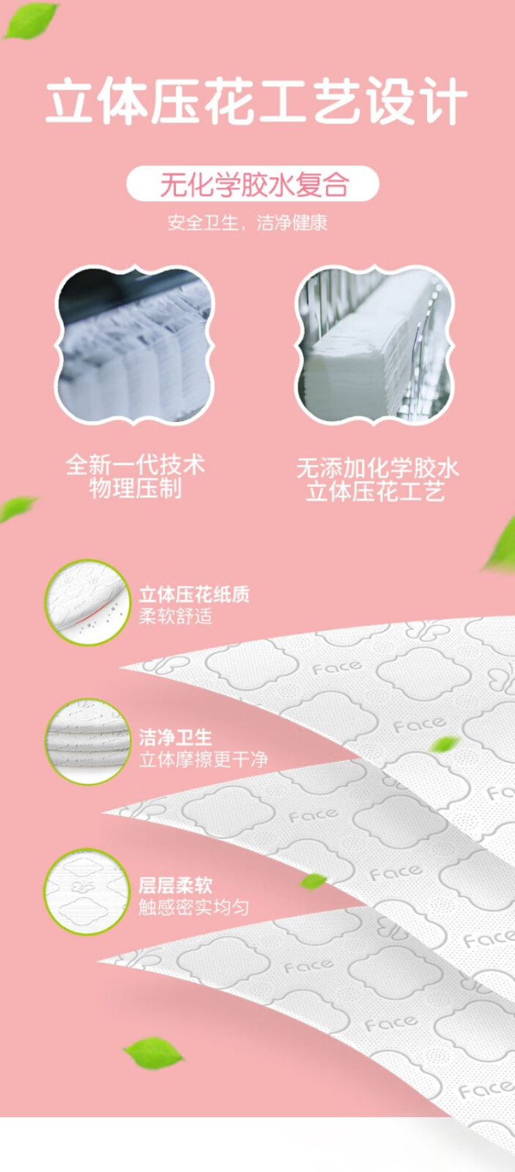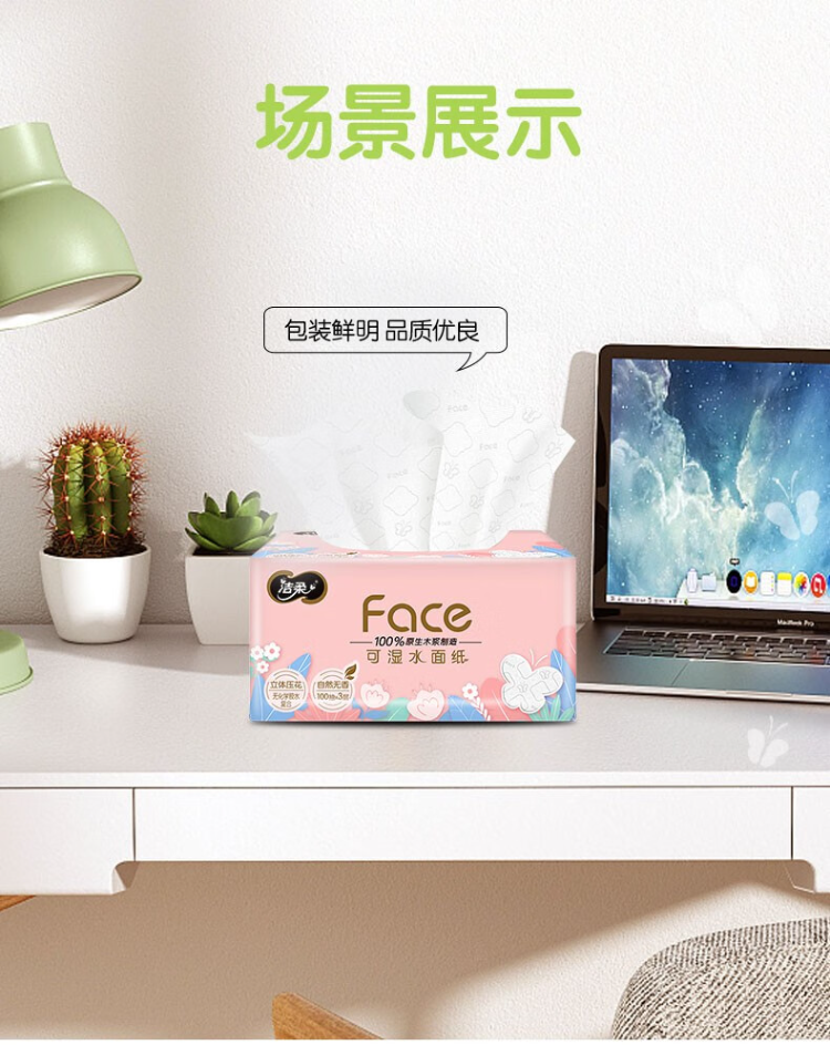 洁柔(C&S) 绵柔感抽纸 DR238-03R-1提 3层100抽3包 粉色(单位:提)