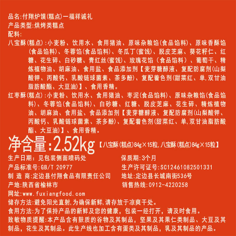 付翔 手工炉馍 福祥诚礼(八宝酥+红枣酥) 2.52kg(84g*30粒) 混合口味 混色(单位:盒)