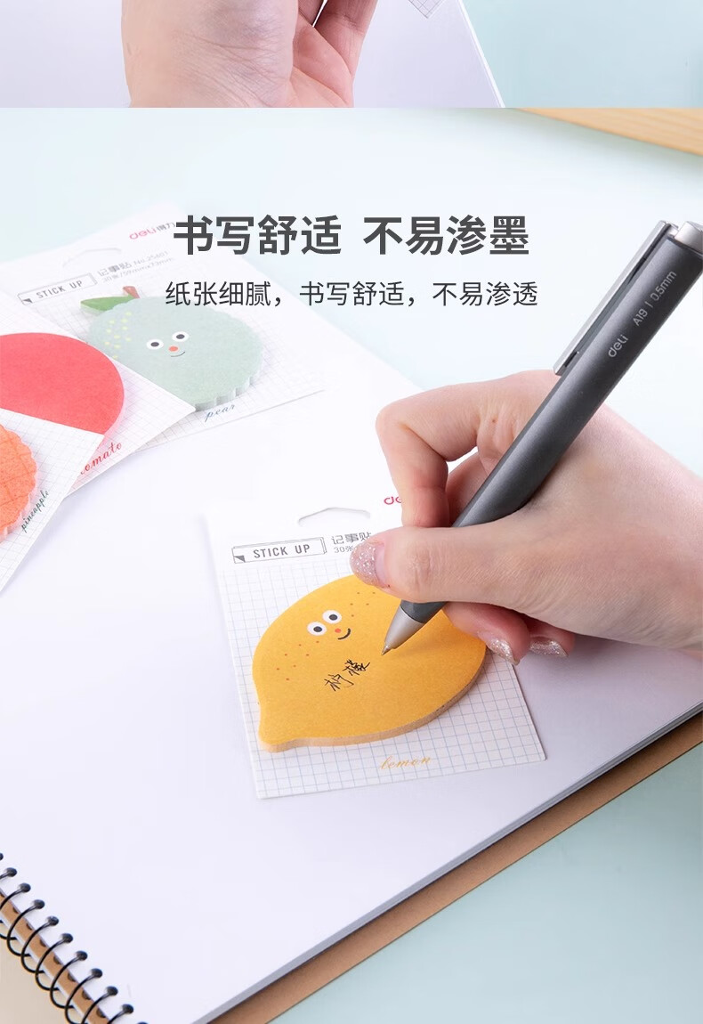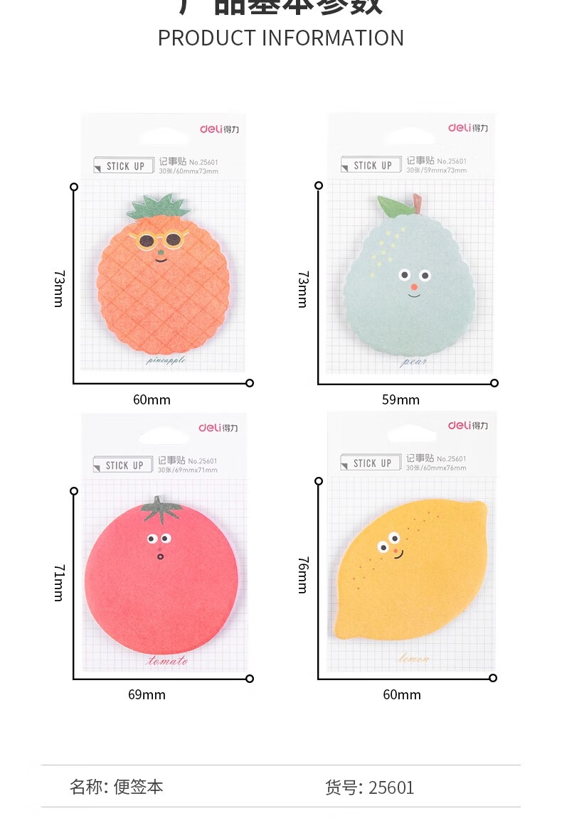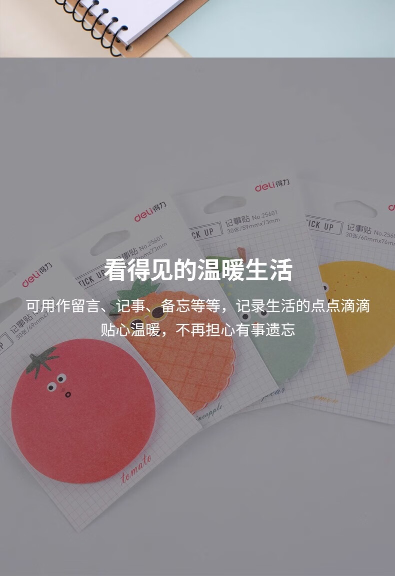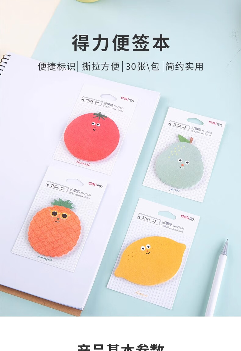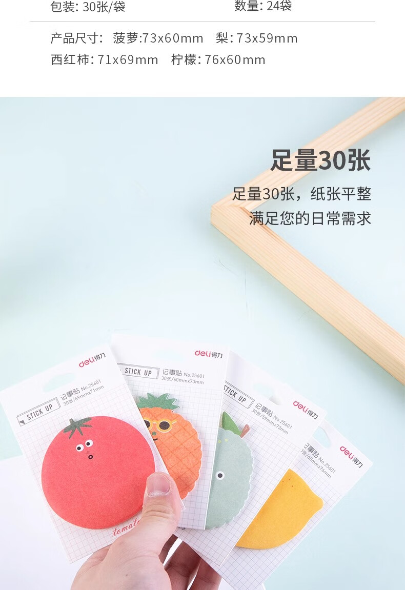 得力(deli) 高颜值水果主题记事贴 25601 30张/包 4包装 混色(单位:袋)