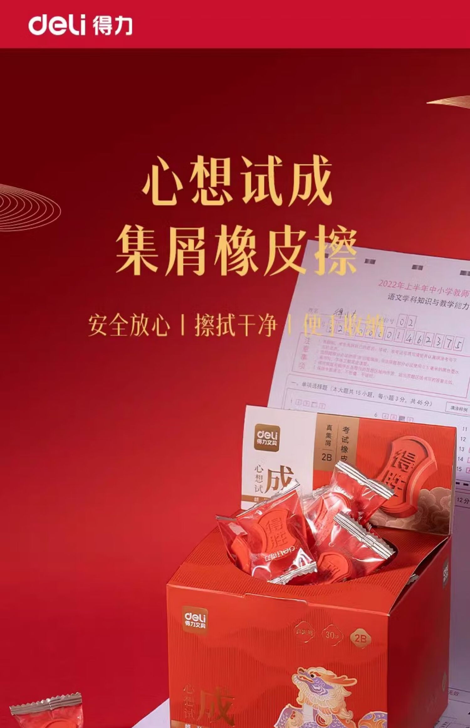 得力(deli) 心想试成旗开得胜集屑橡皮擦 V34 3块装 红色(单位:袋)