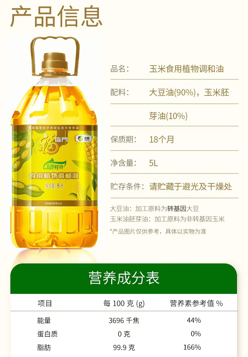 福临门玉米鲜香调和油5升/桶 自然色