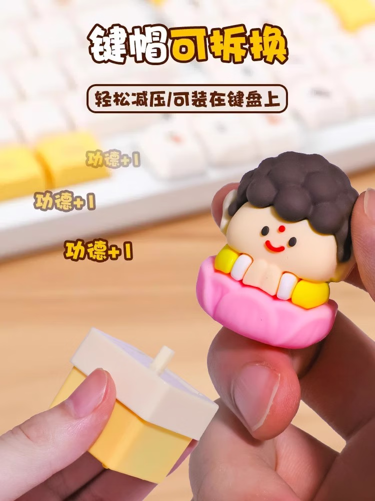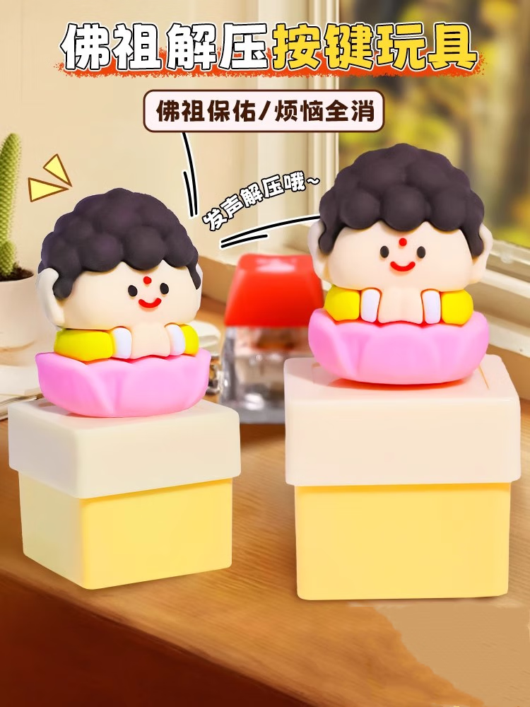 钧捷 解压语音发声按键玩具钥匙扣挂件1个 莫生气佛祖 50g 黄色(单位:个)