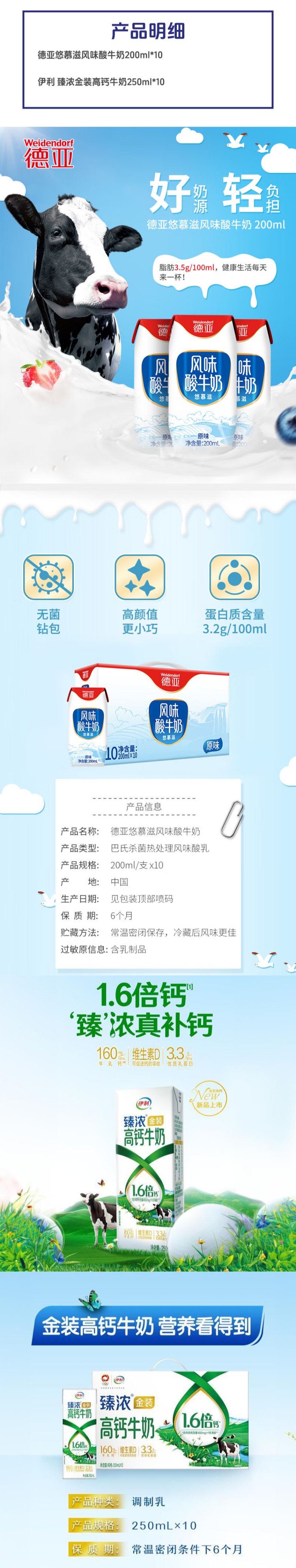 德亚(Weidendorf) /伊利 酸奶牛奶 组合 4.5L 混色(单位:组)