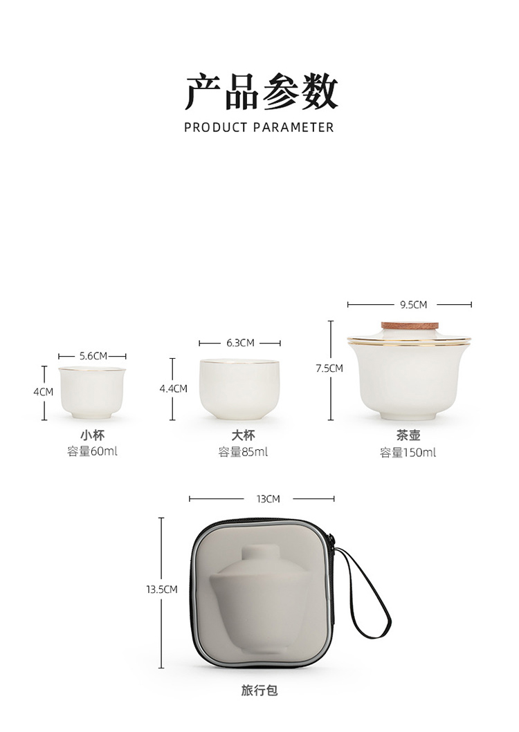 品舰 茶具套装无忧快客杯 PJB061 茶壶*1、茶杯(大)*1、茶杯(小)*1、便携包*1 白色(单位:套)