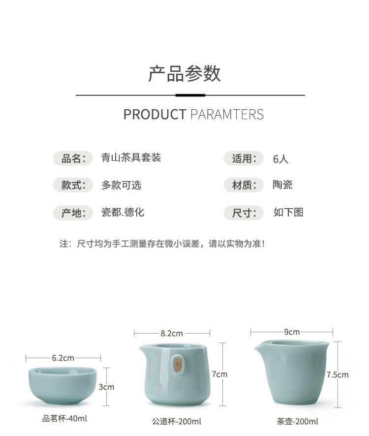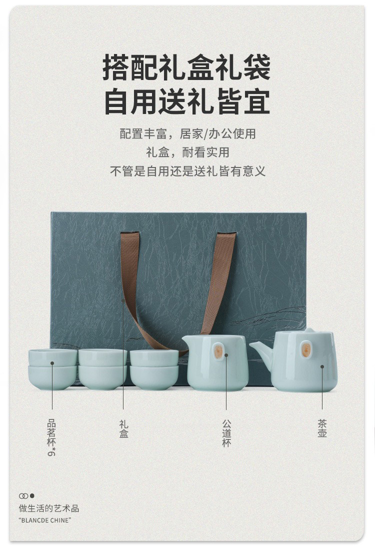 品舰 茶具套装青山 PJL015 茶壶*1、茶杯*6、公道杯*1、礼盒*1 天蓝色(单位:套)