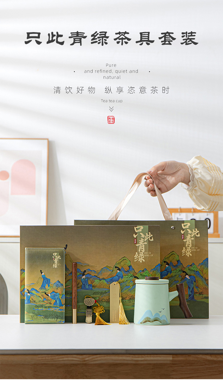 品舰 茶具套装只此青绿 PJL058 办公杯*1、笔记本*1、签字笔、书签*1、U盘*1、礼盒*1 绿色(单位:套)