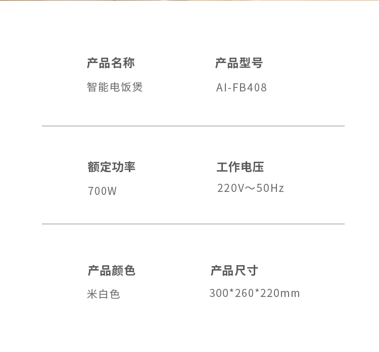 艾青春(AIYOUTH) 电饭煲 AI-FB408 700W 白色(单位:台)
