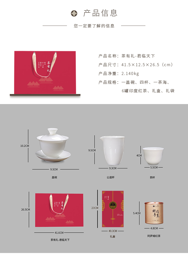 品舰 茶具套装茶有礼-君临天下 PJL08 盖碗*1、公道杯*1、茶杯*4、红茶x6、礼盒*1 白色(单位:套)