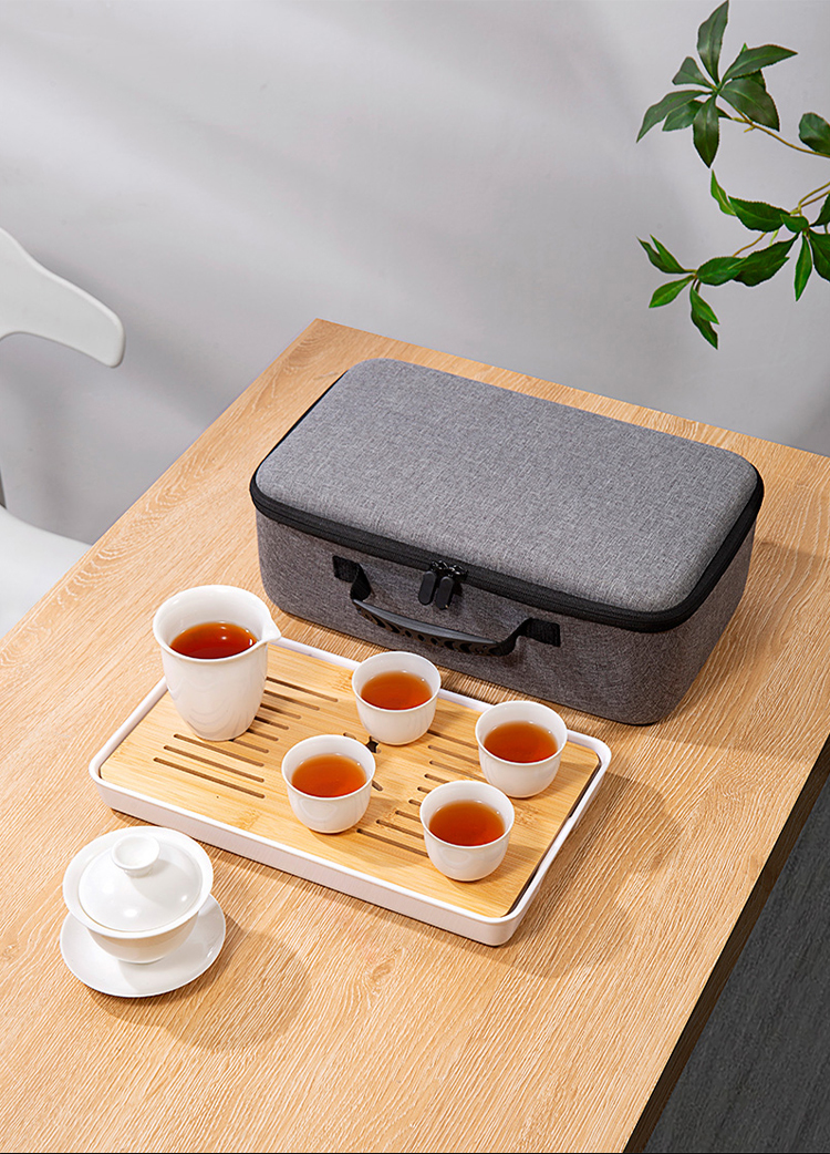 品舰 茶具套装言旅 PJS08 盖碗*1、公道杯*1、茶杯*4、茶盘、高端EV包*1 白色(单位:套)