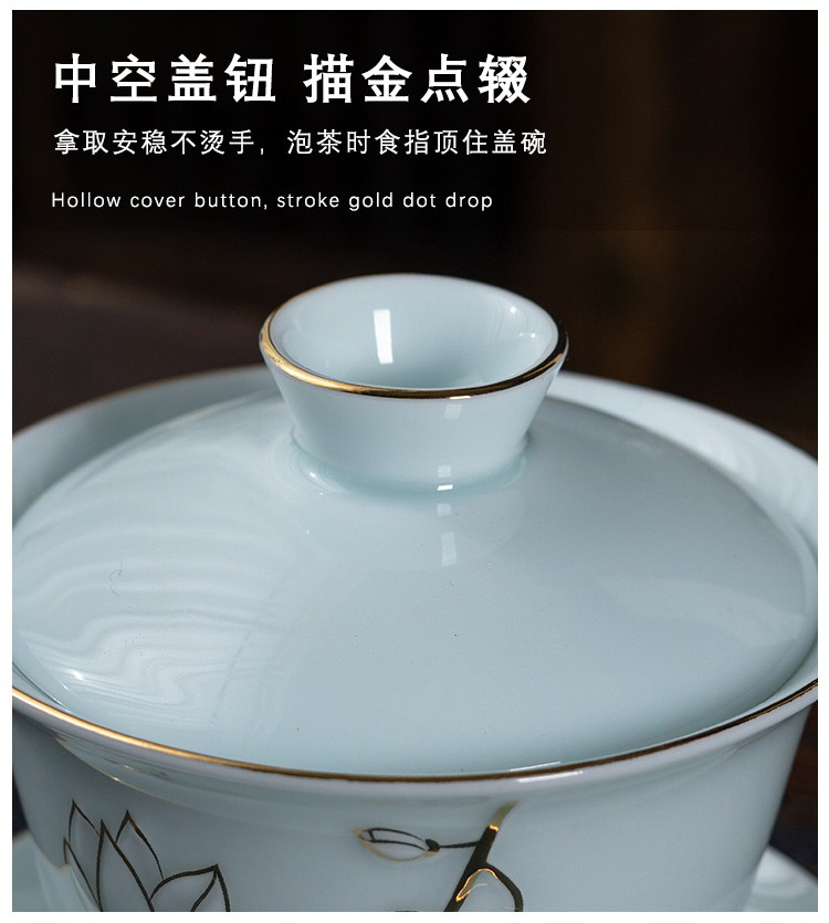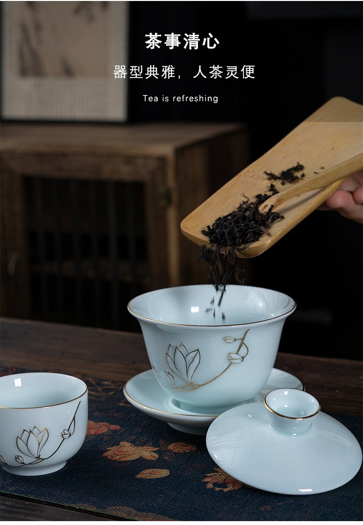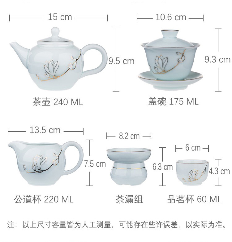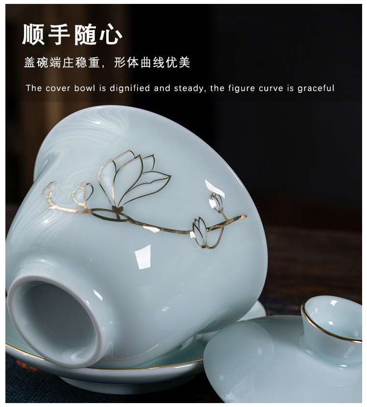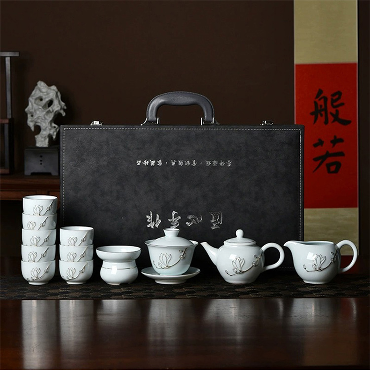 品舰 茶具套装金玉兰花 PJL051 盖碗*1、茶壶*1、茶海*1、茶杯*8、过滤组*1、礼盒*1 天蓝色(单位:套)