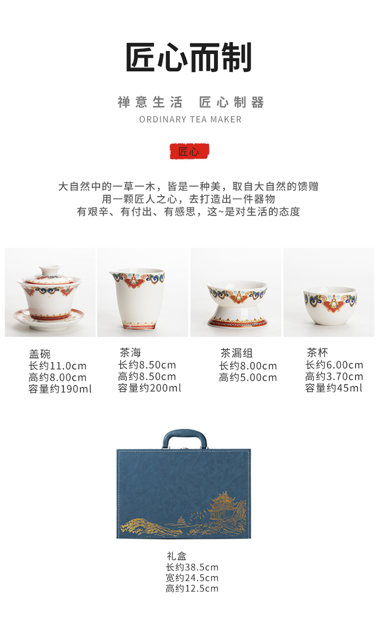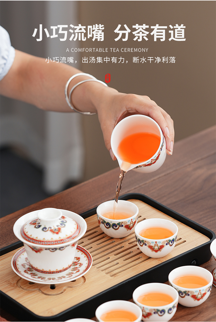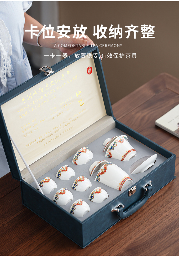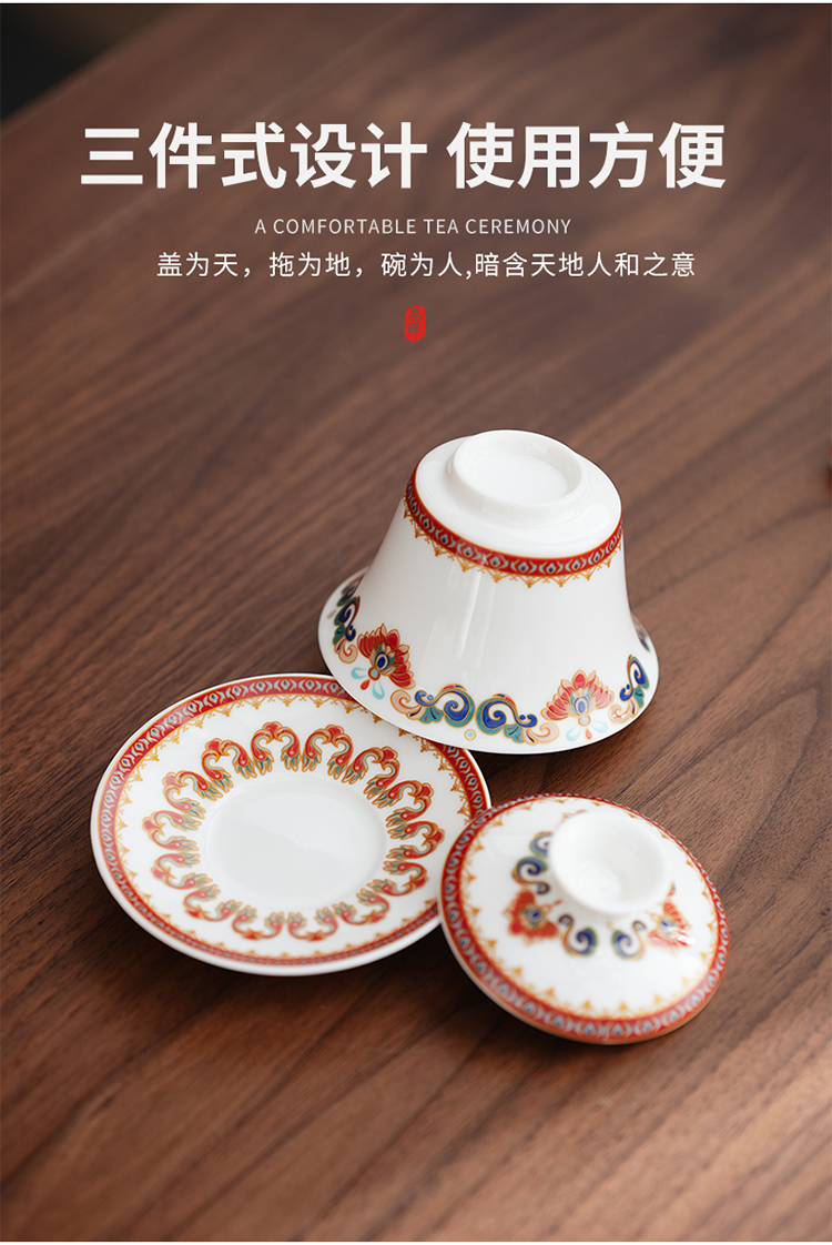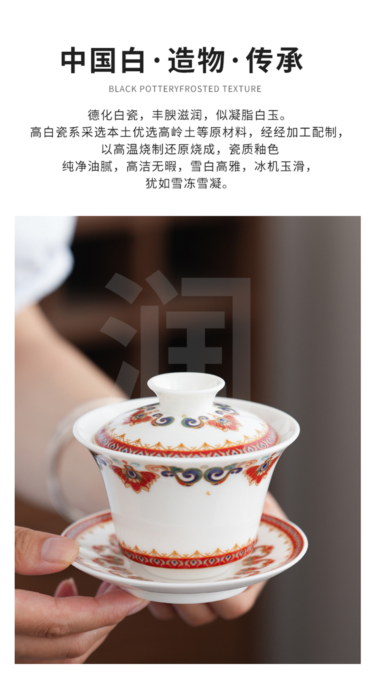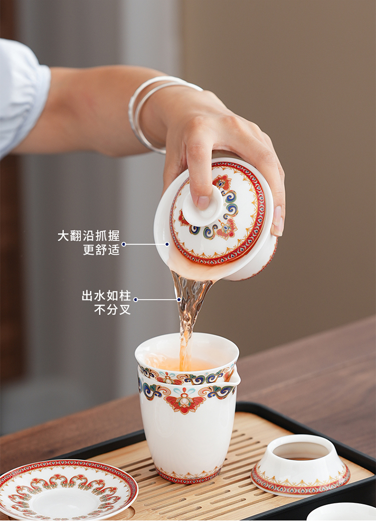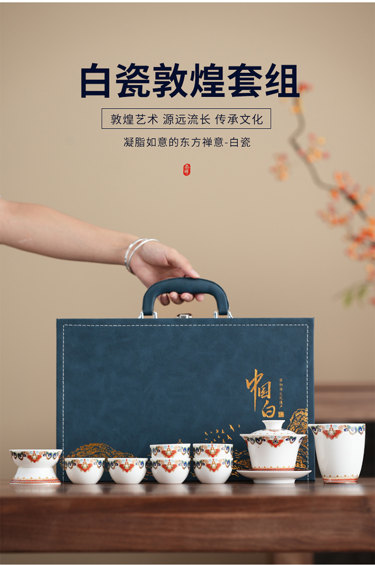 品舰 茶具套装敦煌瓷影 PJL063 盖碗*1、公道杯*1、茶杯*6、过滤组*1、礼盒*1 白色(单位:套)