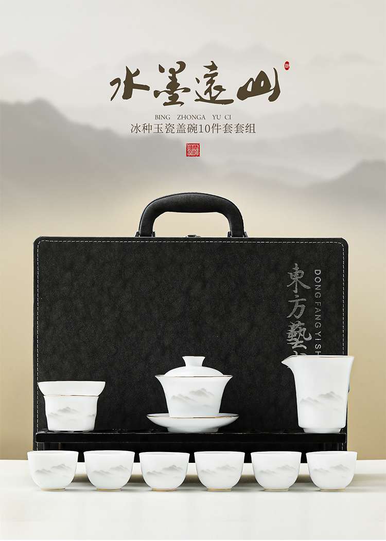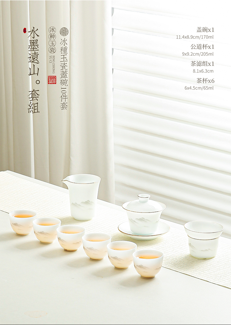 品舰 茶具套装水墨远山 PJL061 盖碗*1、茶杯*6、公道杯*1、过滤组*1、商务包*1 白色(单位:套)