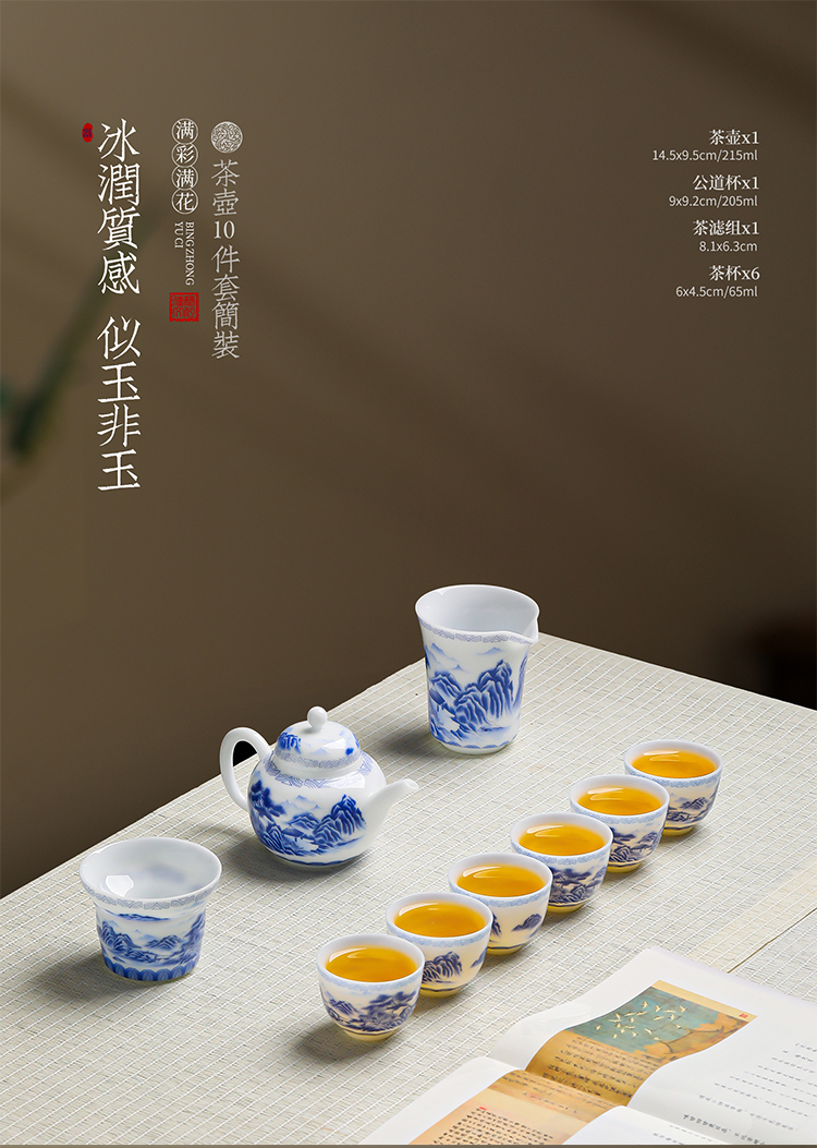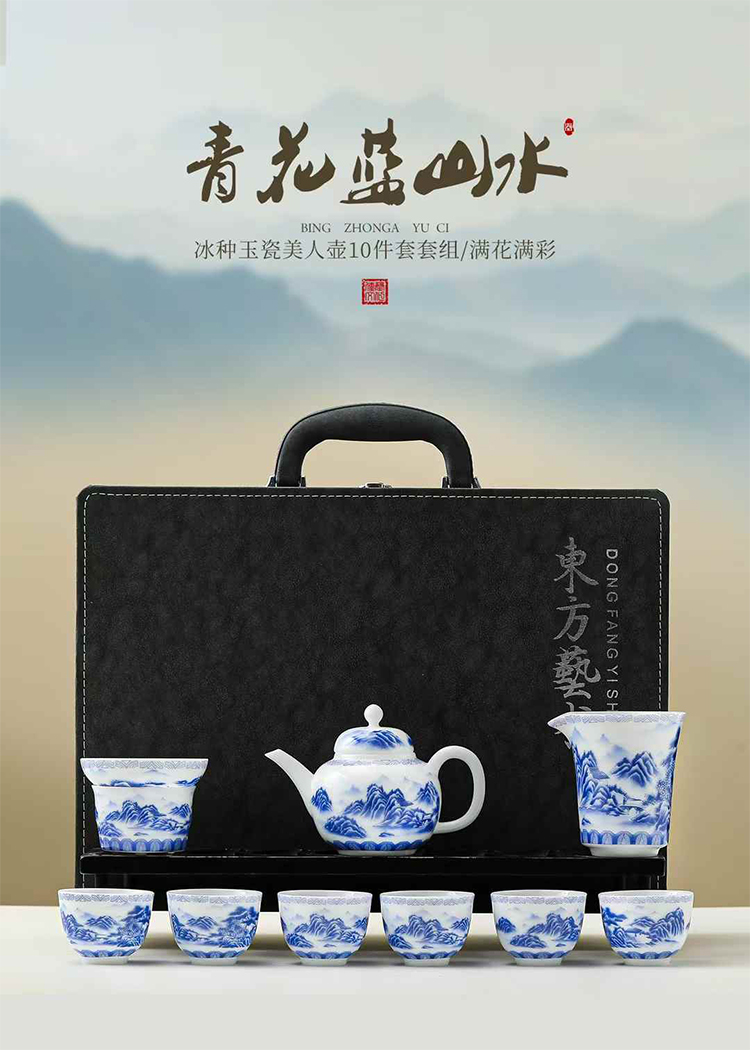 品舰 茶具套装青花桃源 PJL062 茶壶*1、茶杯*6、公道杯*1、过滤组*1、商务包*1 白色(单位:套)