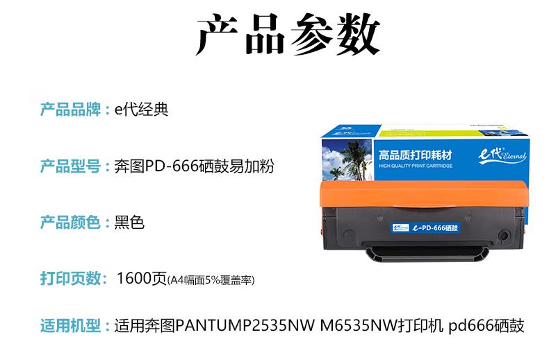 e代经典 PD-666硒鼓易加粉 适用奔图PANTUMP2535NW M6535NW打印机 pd666硒鼓/个 黑色