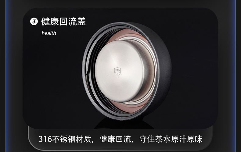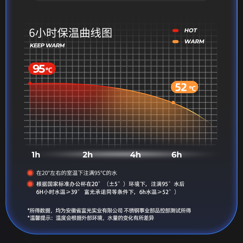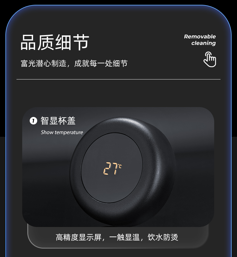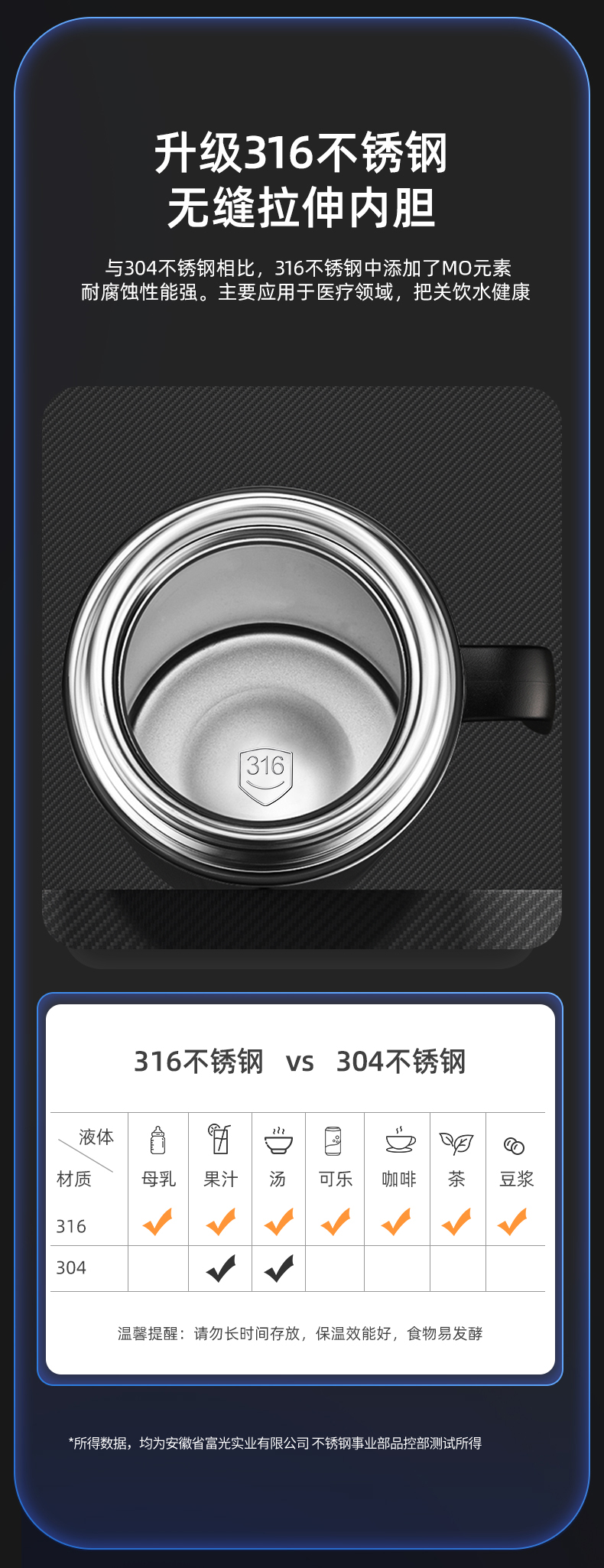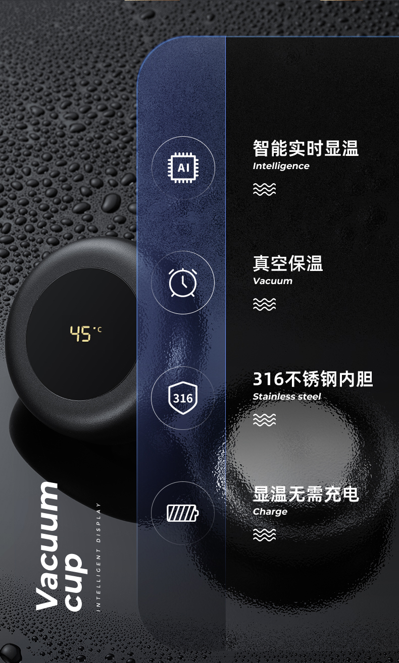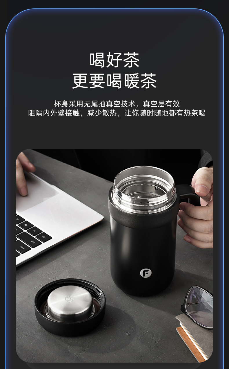 富光 梦想家系列保温杯 316不锈钢智能显温水杯580ML WFZ1189-580B 黑色