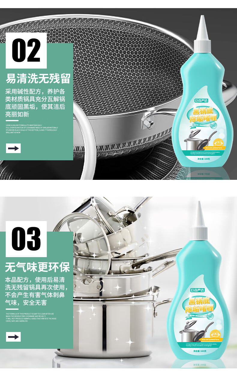 巨奇(JUQI)锅底黑垢去除剂(单位:瓶) 蓝色160g*3瓶