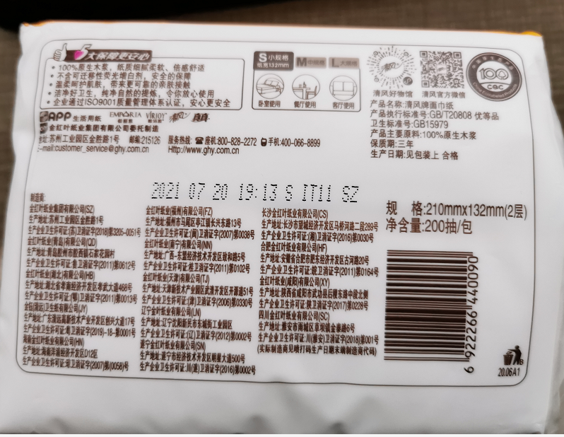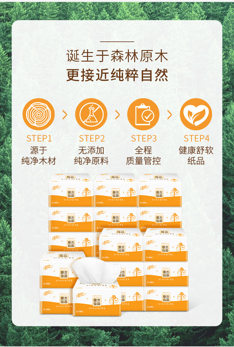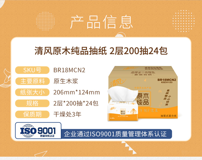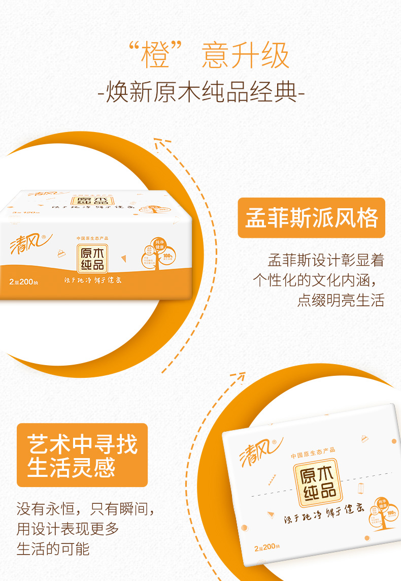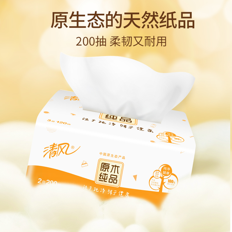 清风原木纯品2层200抽24包(偏远地方不能发货) 图片色