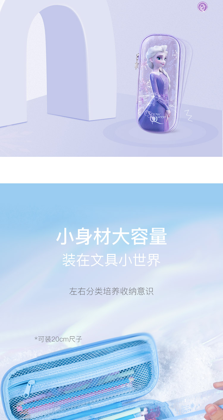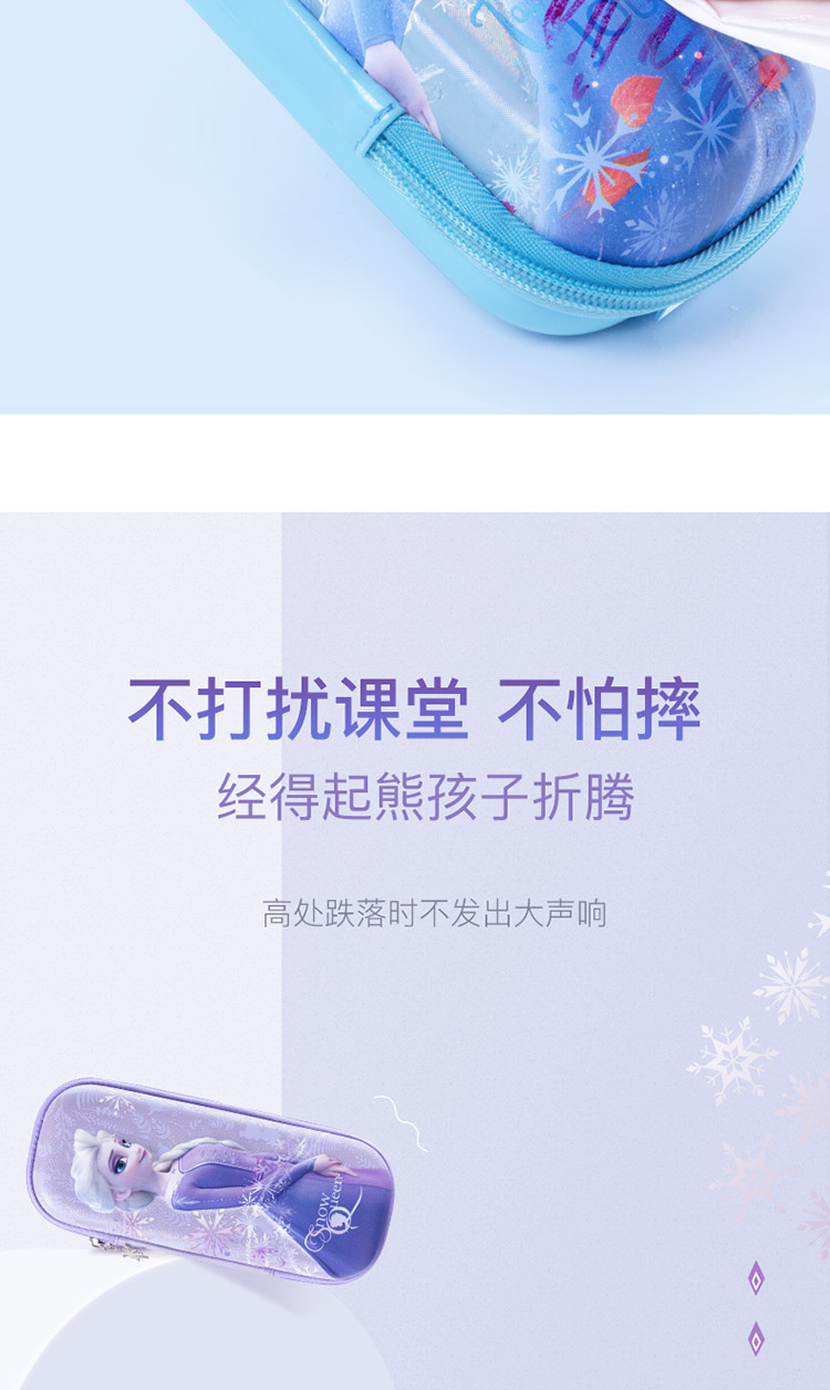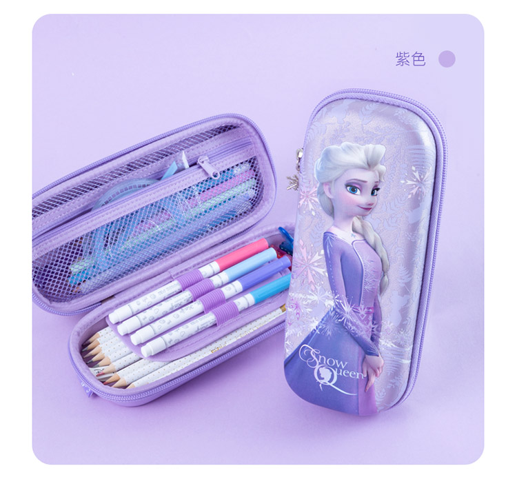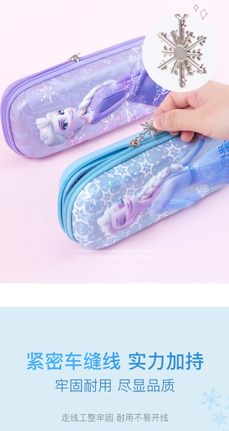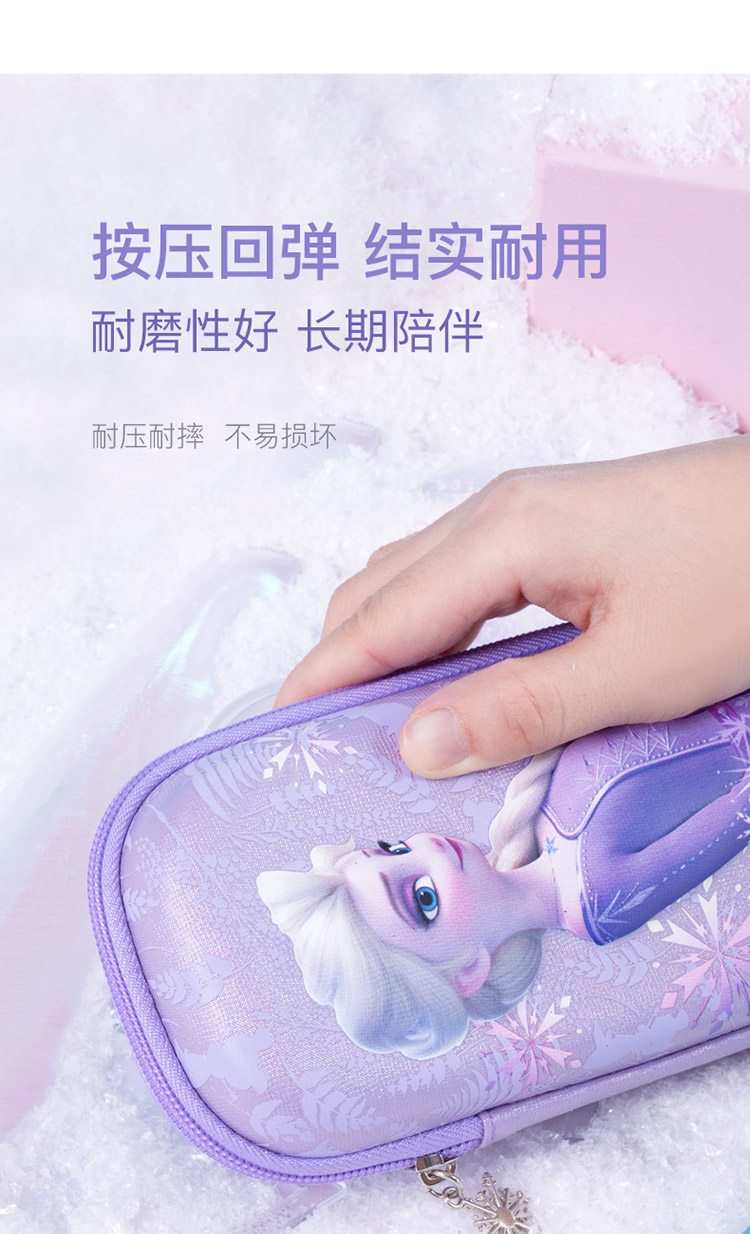迪士尼(Disney)小学生文具盒 女童大容量笔袋 EVA轻盈大容量设计 冰雪奇缘系列 炫紫色 紫色