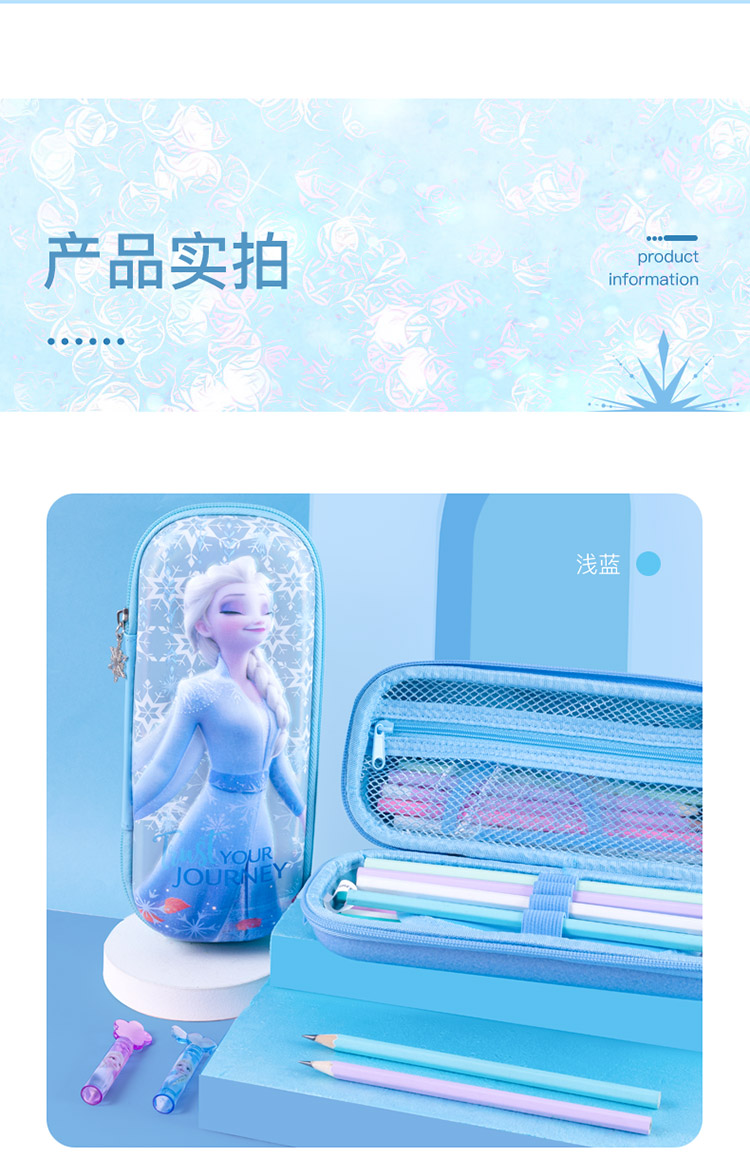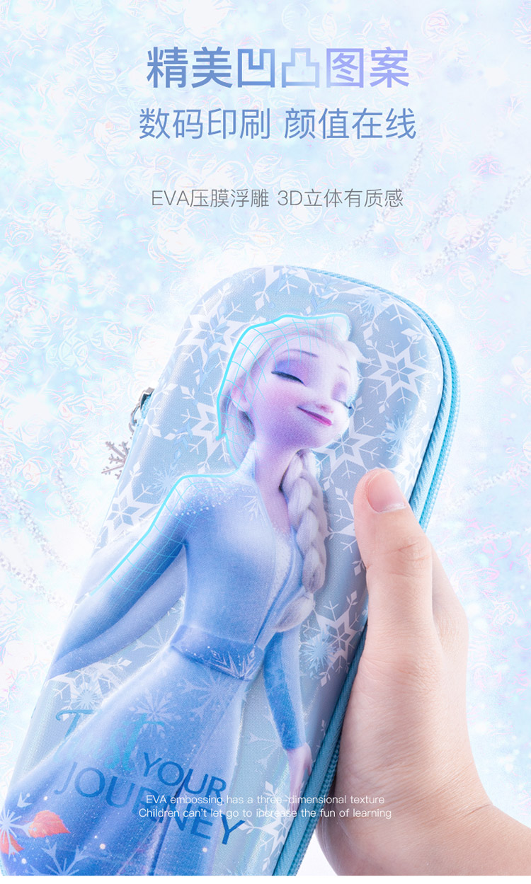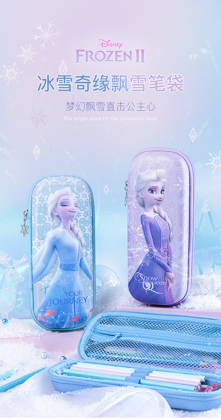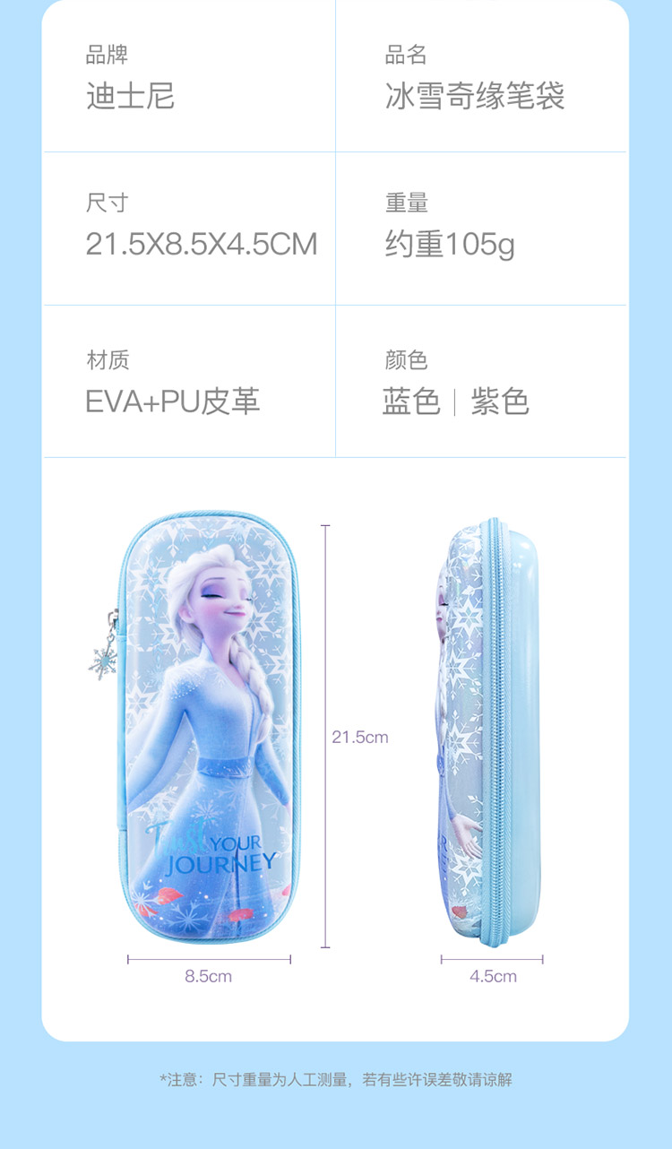 迪士尼(Disney)小学生文具盒 女童大容量笔袋 EVA轻盈大容量设计 冰雪奇缘系列 炫紫色 紫色