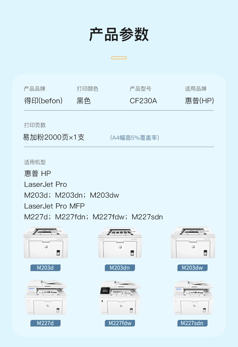得印(befon) CF230A易加粉粉盒 2000页 适用惠普M203dM227fdn 单位:支 黑色