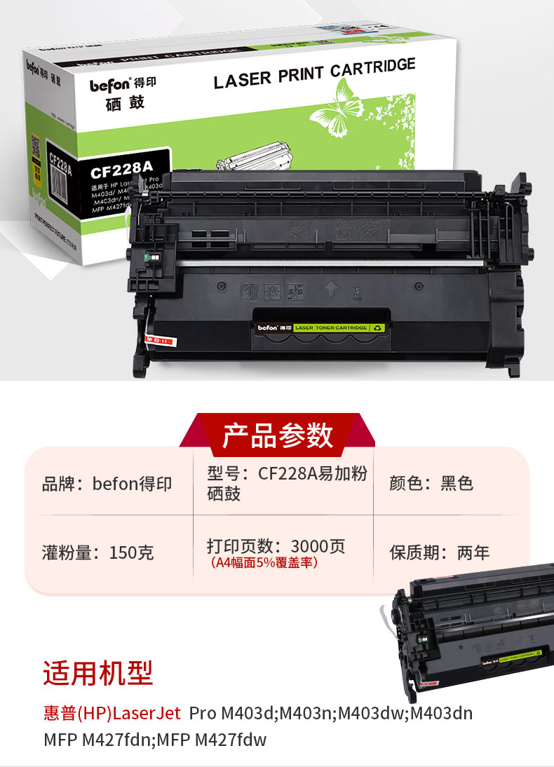 得印(befon) CF228A 大容量易加粉 3000页 适用惠普M403d 硒鼓 1.00 只/支 (计价单位:支) 黑色 黑色