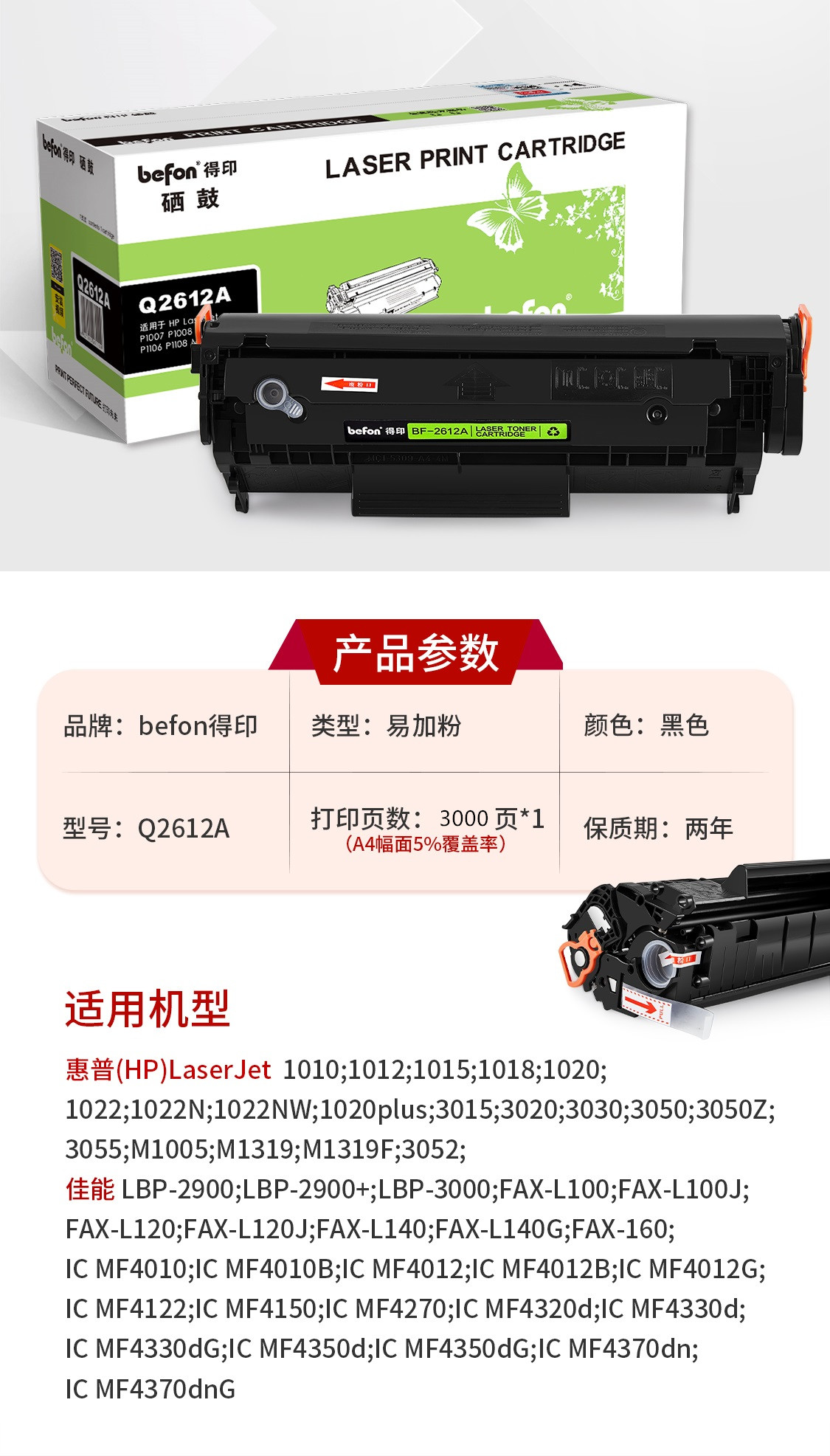 得印q2612a 硒鼓大容量 适用惠普 m1005 1020plus 1010 1018单位:支 黑色