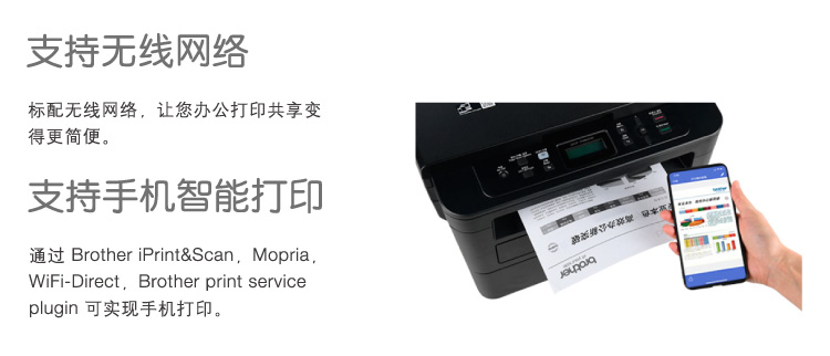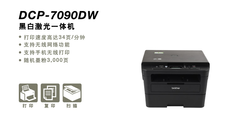 兄弟(brother)黑白激光一体机(三合一 双面打印 无线网络 )DCP-7090DW 黑色