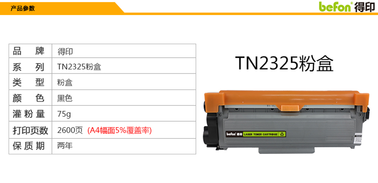 得印 TN2325粉盒易加粉2支装 墨盒硒鼓 单位:套 黑色