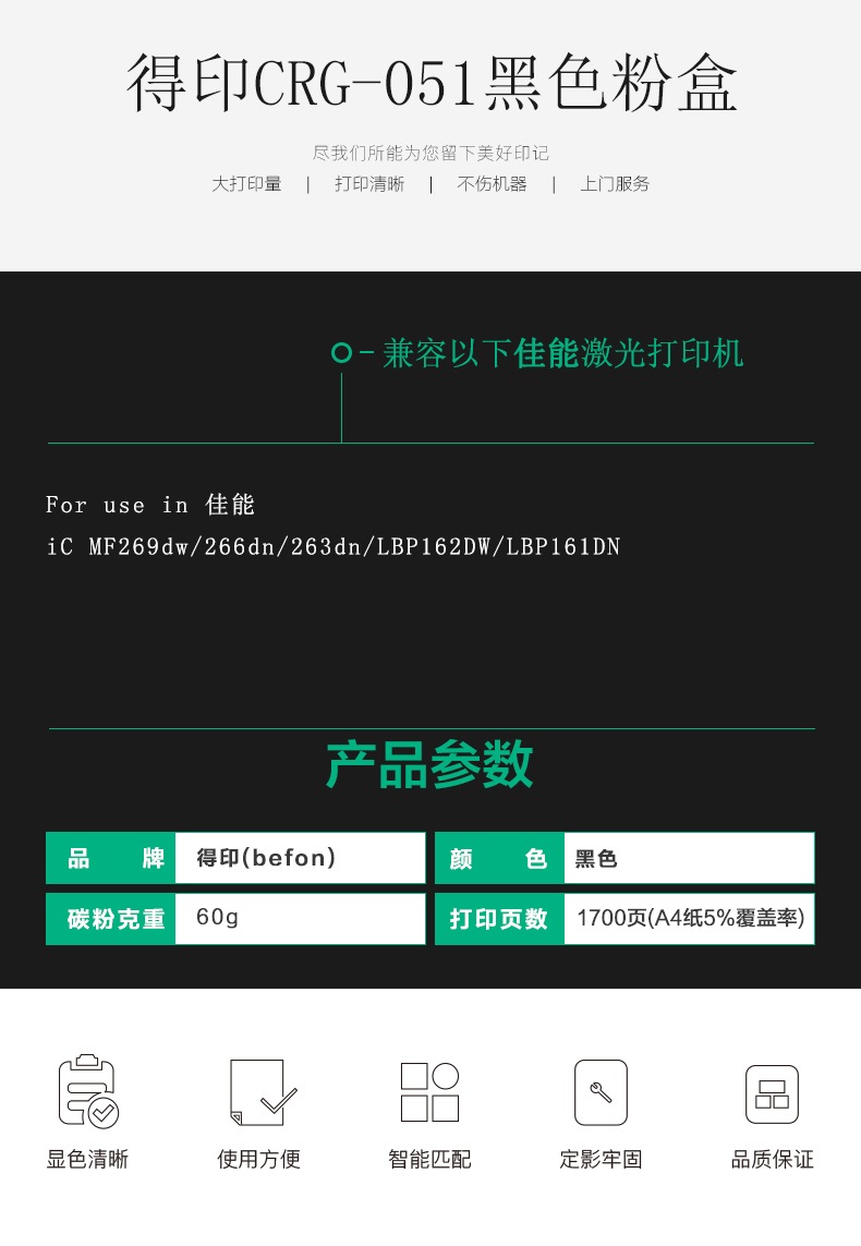 得印 CRG-051黑色粉盒 佳能 iC MF269dw/266dn/263dn 单位:支 黑色