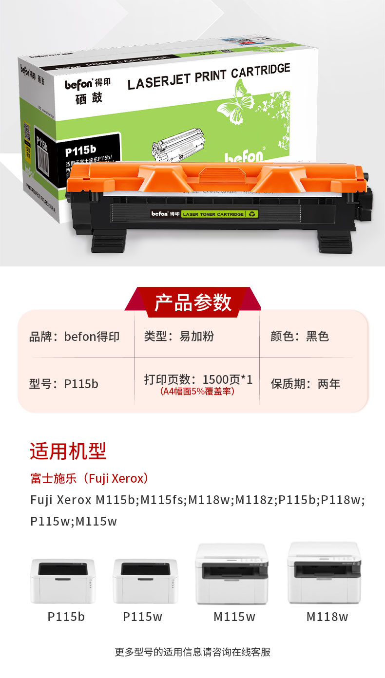 得印(befon)P115b易加粉黑色墨粉盒 CT202138(适用富士施乐P115b/M115b/M115f/M115fs/P118w/M118w/M118z) 黑色