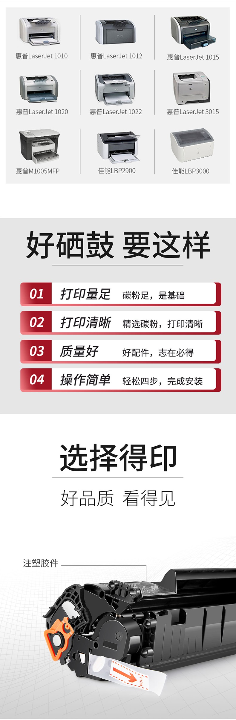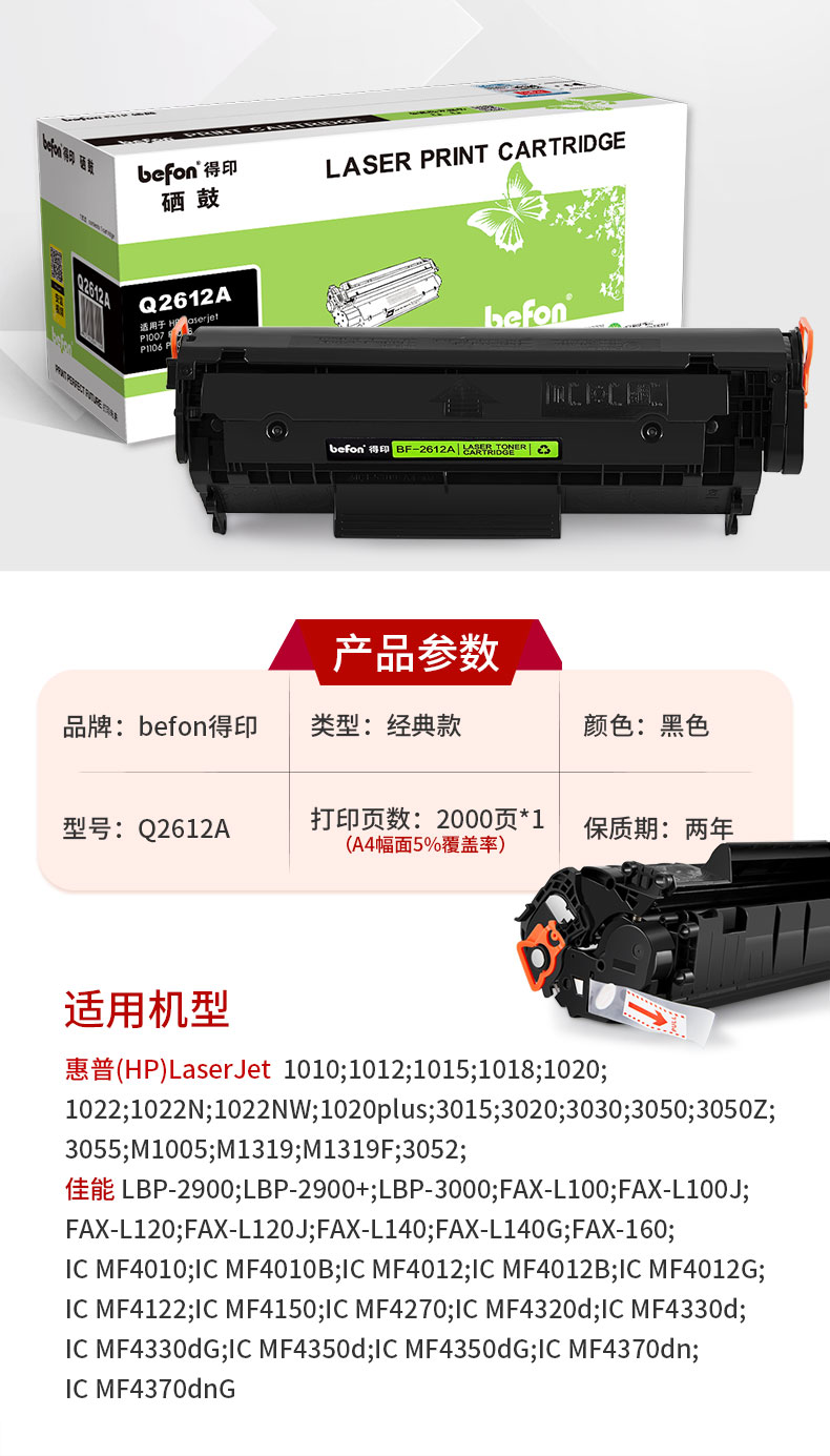 得印q2612a 12a硒鼓 适用惠普1020硒鼓hp m1005 1020plus 1010 1018佳能lbp2900打印机墨盒碳粉盒 黑色