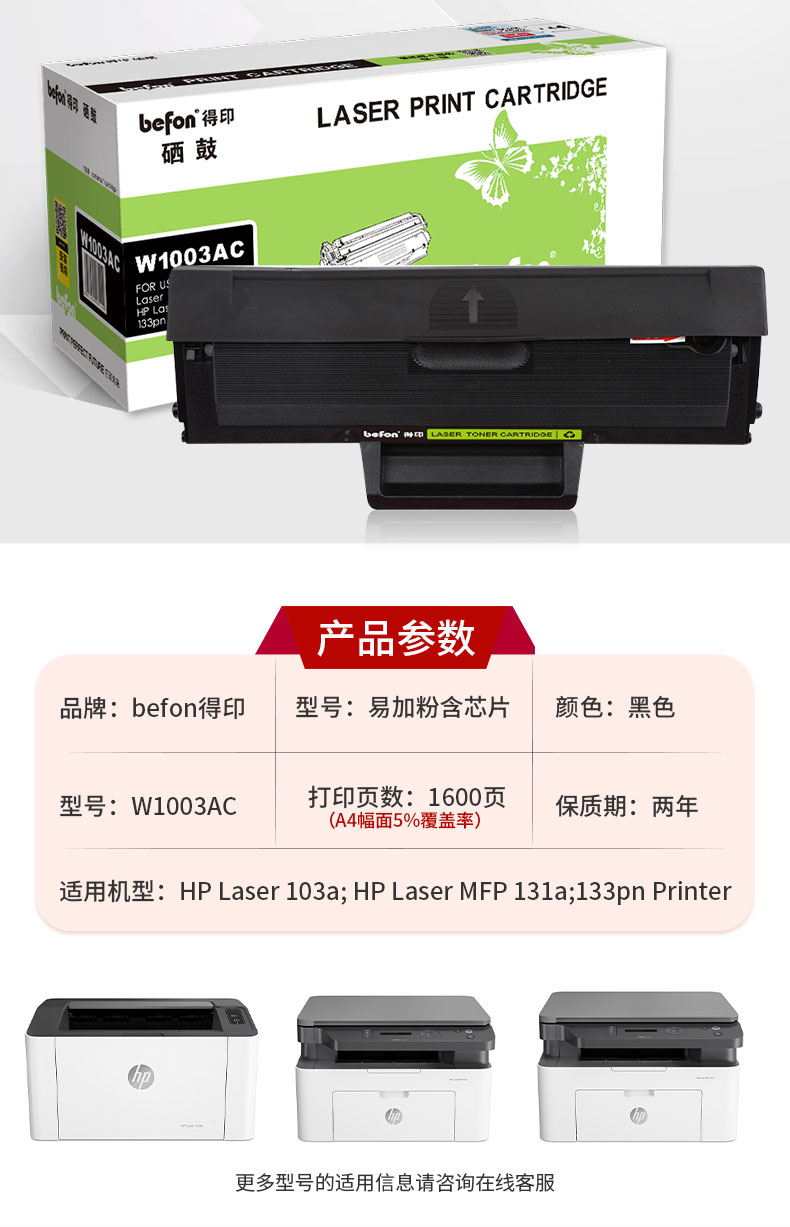 得印 W1003AC硒鼓带芯片 适用HP Laser 103a MFP 131a 133p单位:支 黑色