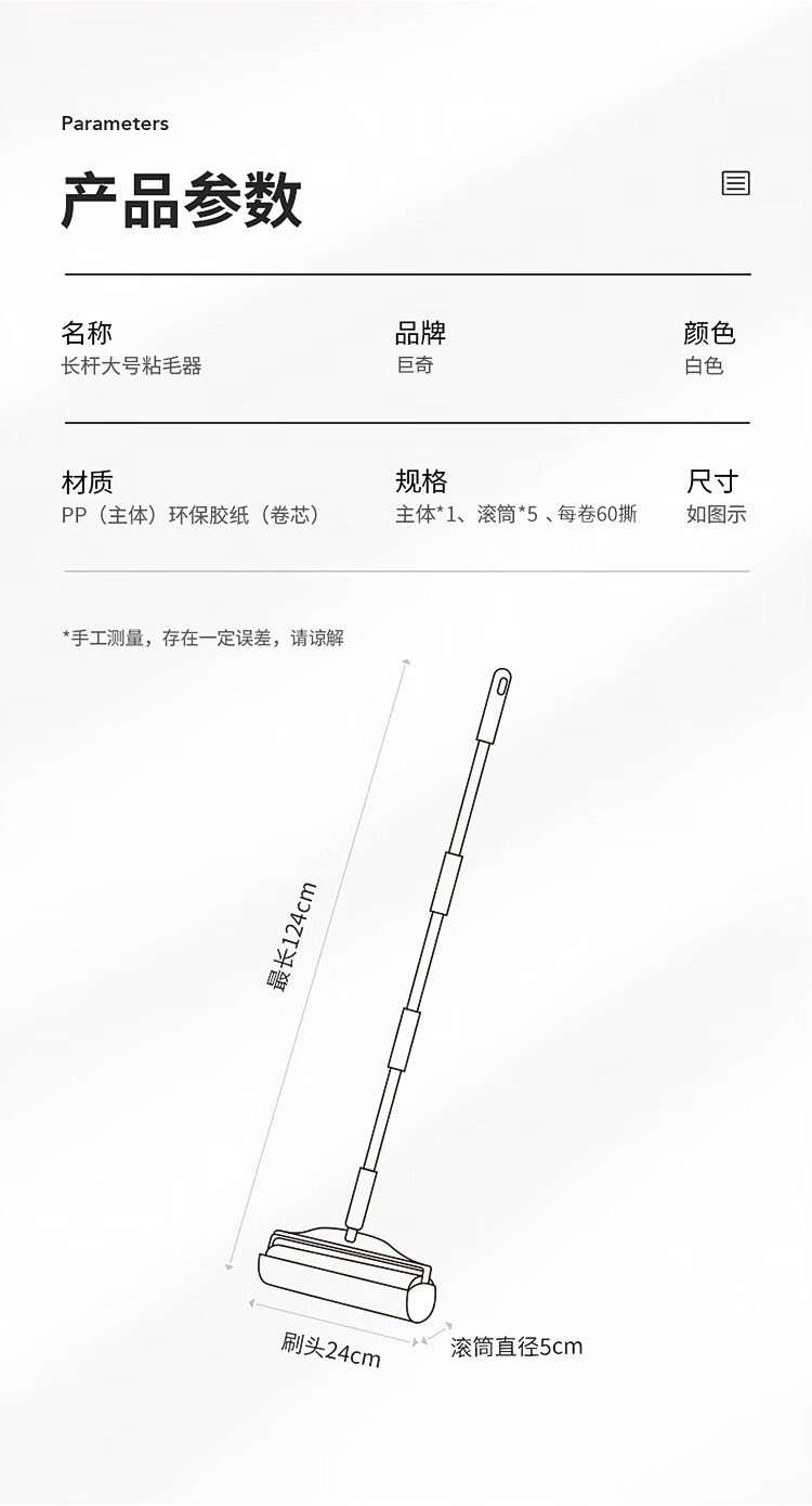 巨奇24cm粘毛器套装(新老包装随机发货)(单位:套) 白色,24cm加长杆滚筒+7卷420撕