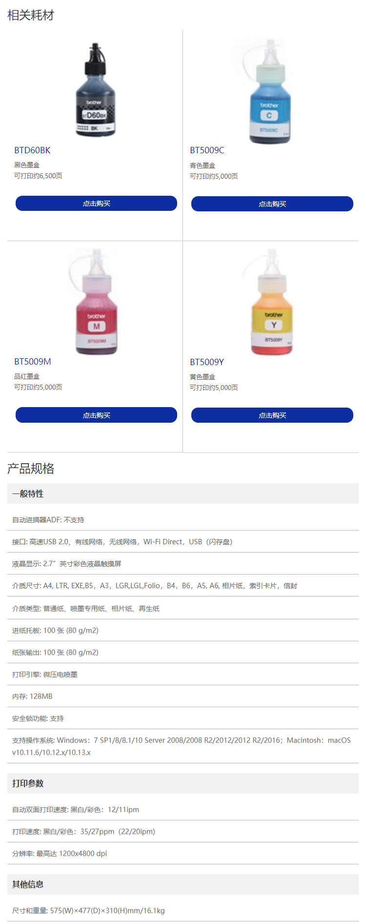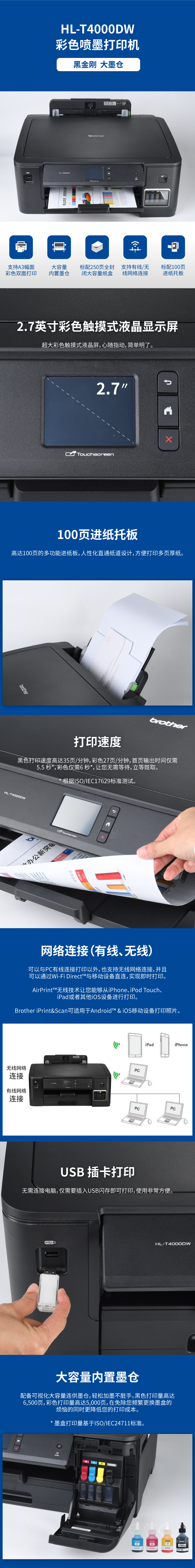 兄弟(brother) 彩色喷墨打印机(A3幅面 单打印)HL-T4000DW 黑色