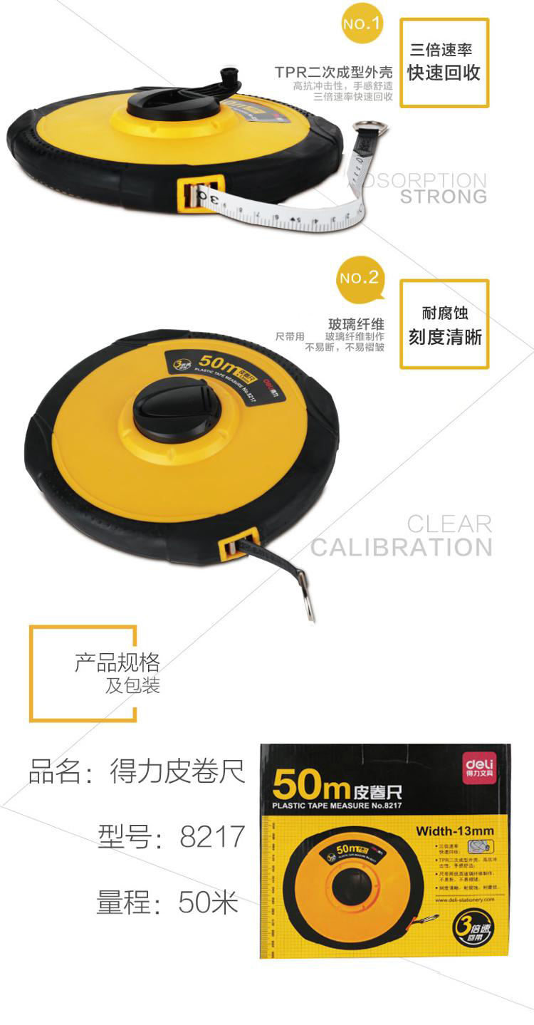 得力8217皮卷尺50m(黄)(把)起订量10 黄色