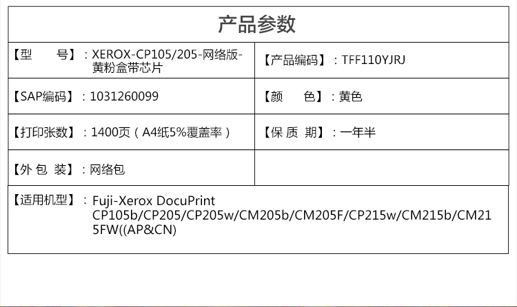 天威 适用富士 施乐CP105A CP205 CM205A墨粉CM205F CP215w CM215A 打印机硒鼓 专业装 CP105 黄色粉盒带芯片 黄色
