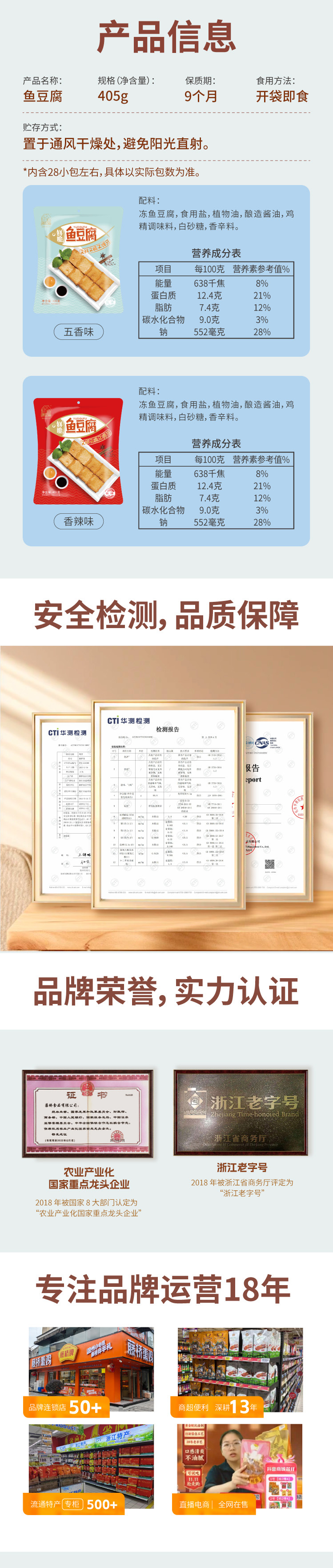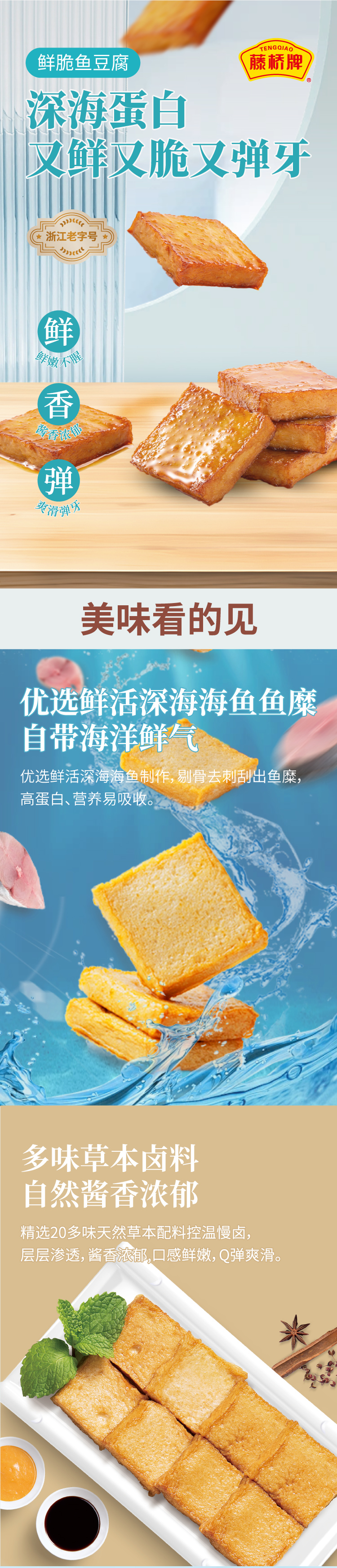 藤桥牌 藤桥鱼豆腐 405g 五香味 拿铁色(单位:袋)