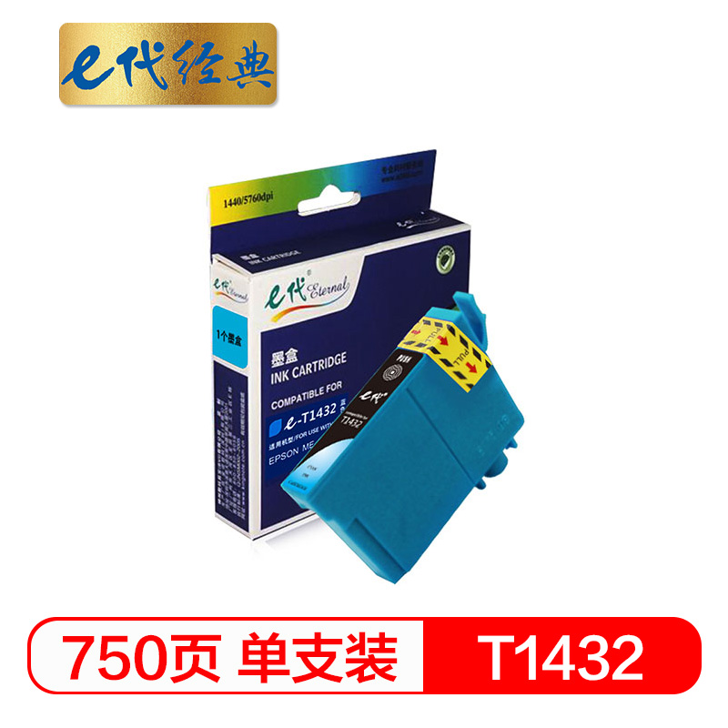 e代经典 e-T1432 打印量750页 适用爱普生EPSON WF-7511 7521 墨盒 (计价单位:盒) 青色 青色
